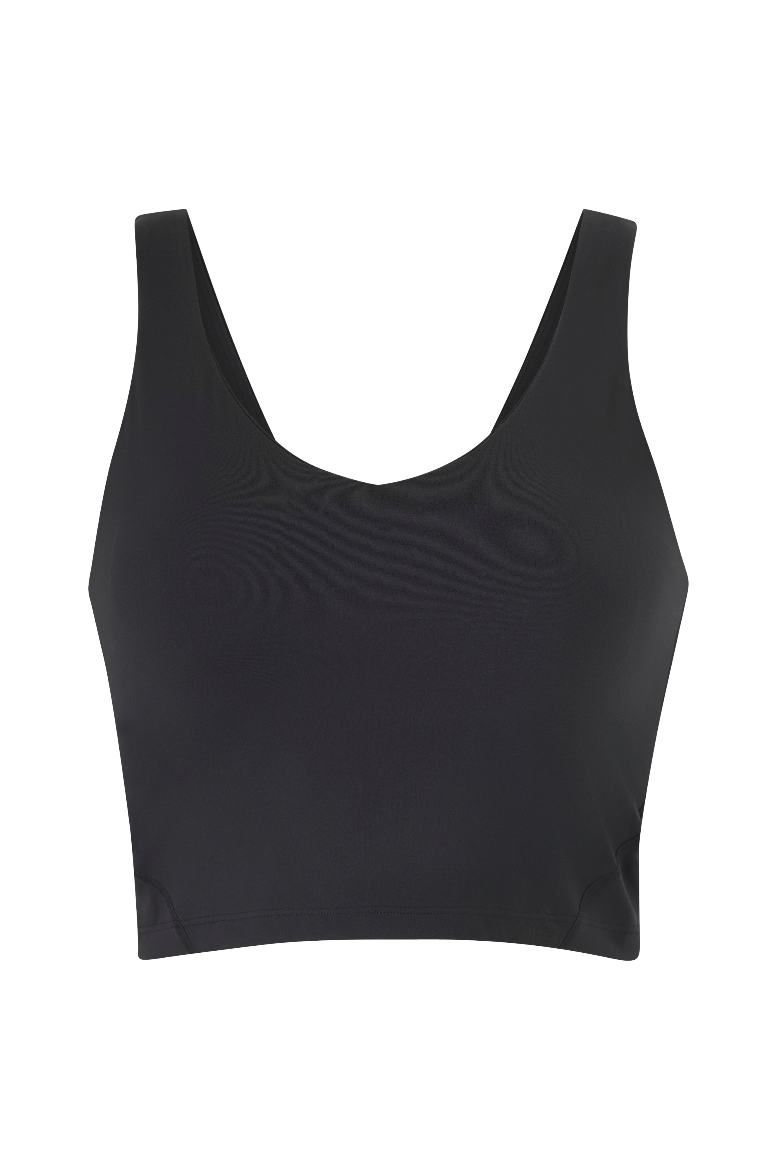 • Kort, fukttransporterende treningstopp med innebygd sports-BH