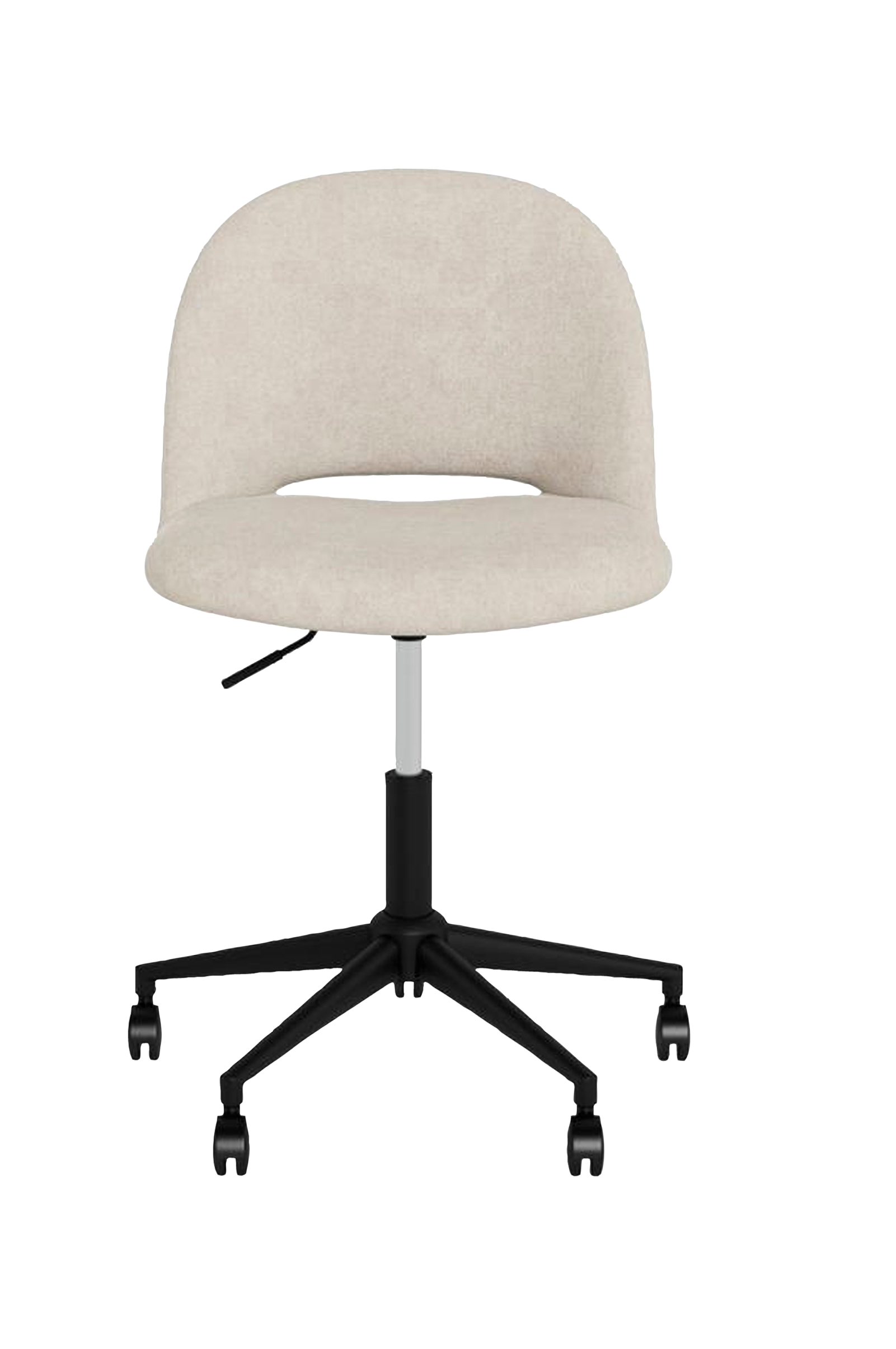 Denne høydejusterbare skrivebordsstolen har et elegant uttrykk som passer inn i de fleste hjem, og praktiske funksjoner som bidrar til komfort. Det avrundede setet er kledd i et chenillelignende stoff som gir en myk følelse. Den støttes av et femstjerners dreiefotkryss med myke bremsehjul for jevn seterotasjon og sikker bevegelse.