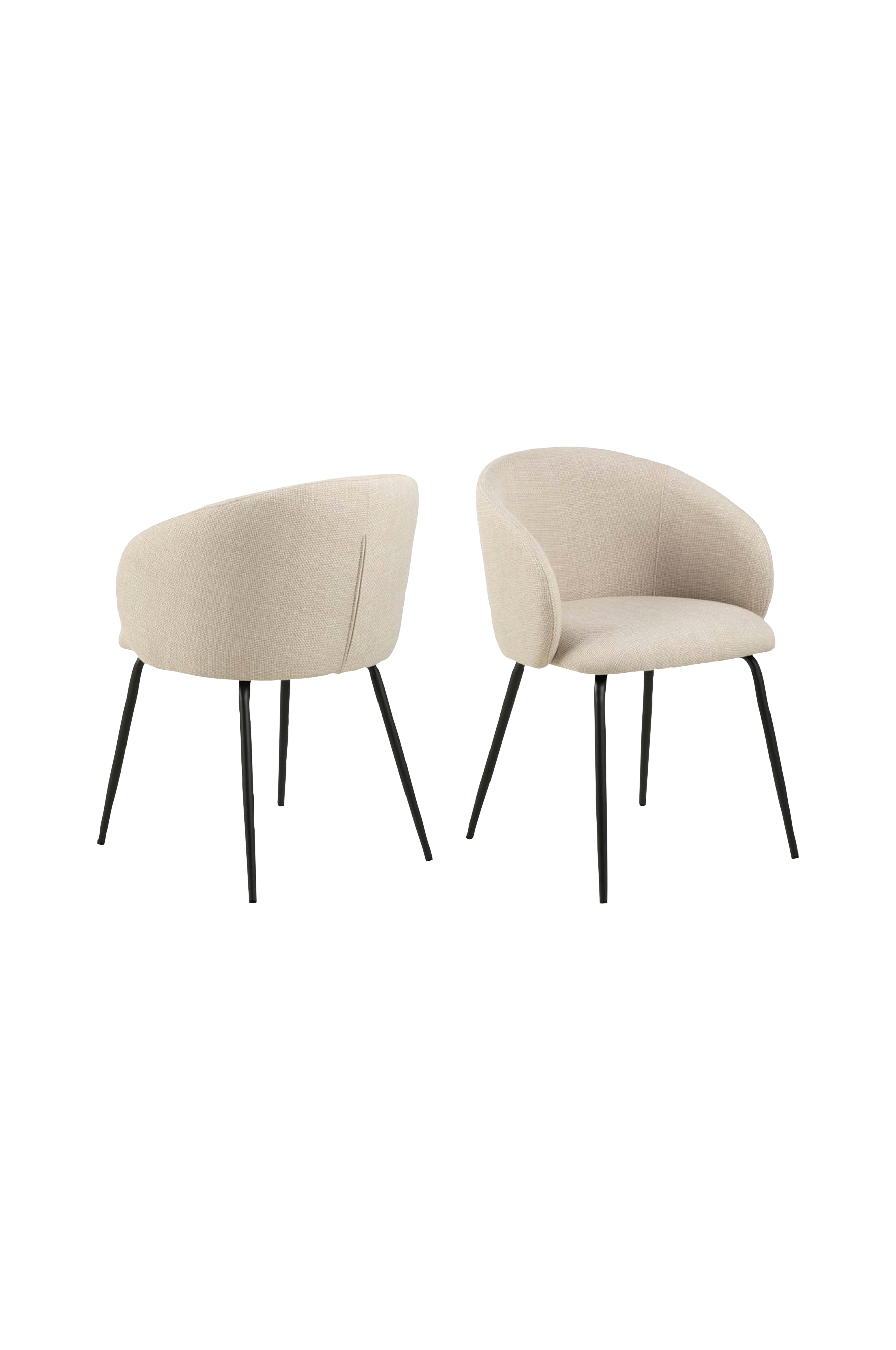 Eleanor spisestol med armlener, baselstoff beige 24, understell matt svart pulverlakkert stål, med glidelås, eske 2 stk - spesielle anledninger eller hverdagsmiddag, denne spisestolen kan gjøre begge deler. De organiske kurvene på setet og de slanke, svarte stålbeina gir stolen et feminint uttrykk. Det beige trekket er trukket i et strukturert stoff med tofarget effekt og gjør stolen interessant å se på. En slik stol er et flott tilskudd til et mykt interiør, der den smelter uanstrengt inn.