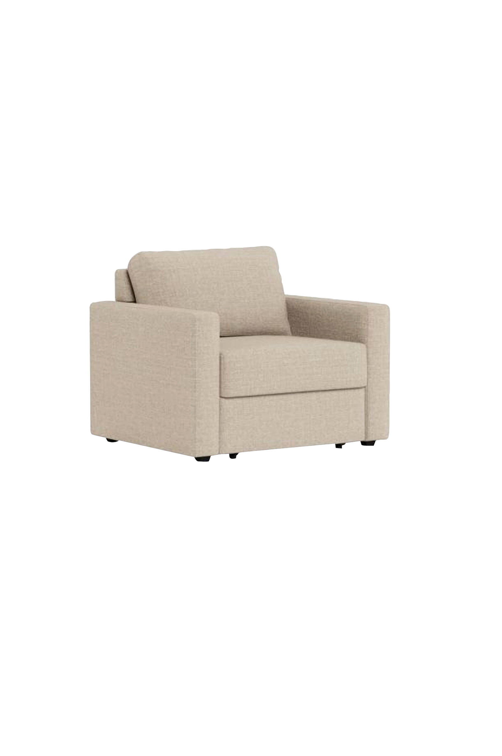 Dette er en sovesofa med armlener som har et klassisk utseende og rette linjer. Den er designet med en sammenleggbar uttrekkbar sengefunksjon for å gjøre det mer komfortabelt for deg eller overnattingsgjestene dine. Det strukturerte stoffet med tofarget effekt er helt omsluttet av sofaen og pryder også de to løse ryggputene. Den står på nøytrale, runde ben.