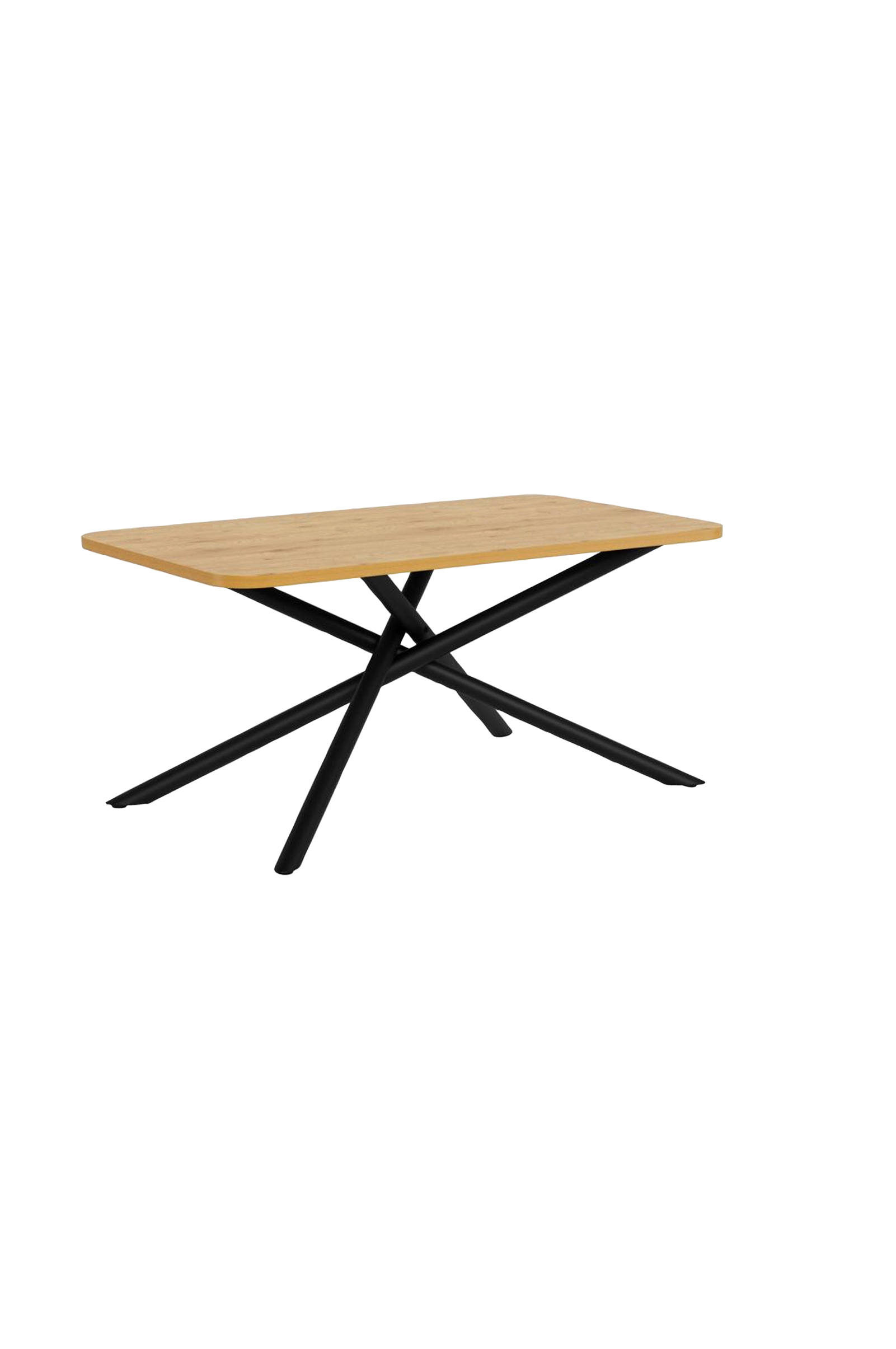 Dette spisebordet forener naturlig varme og visuell interesse. Overflaten i vill eik gir et mykt, taktilt preg, mens det geometriske understellet gir designet et slående og industrielt preg - perfekt til både hverdagsmåltider og stilige sammenkomster.