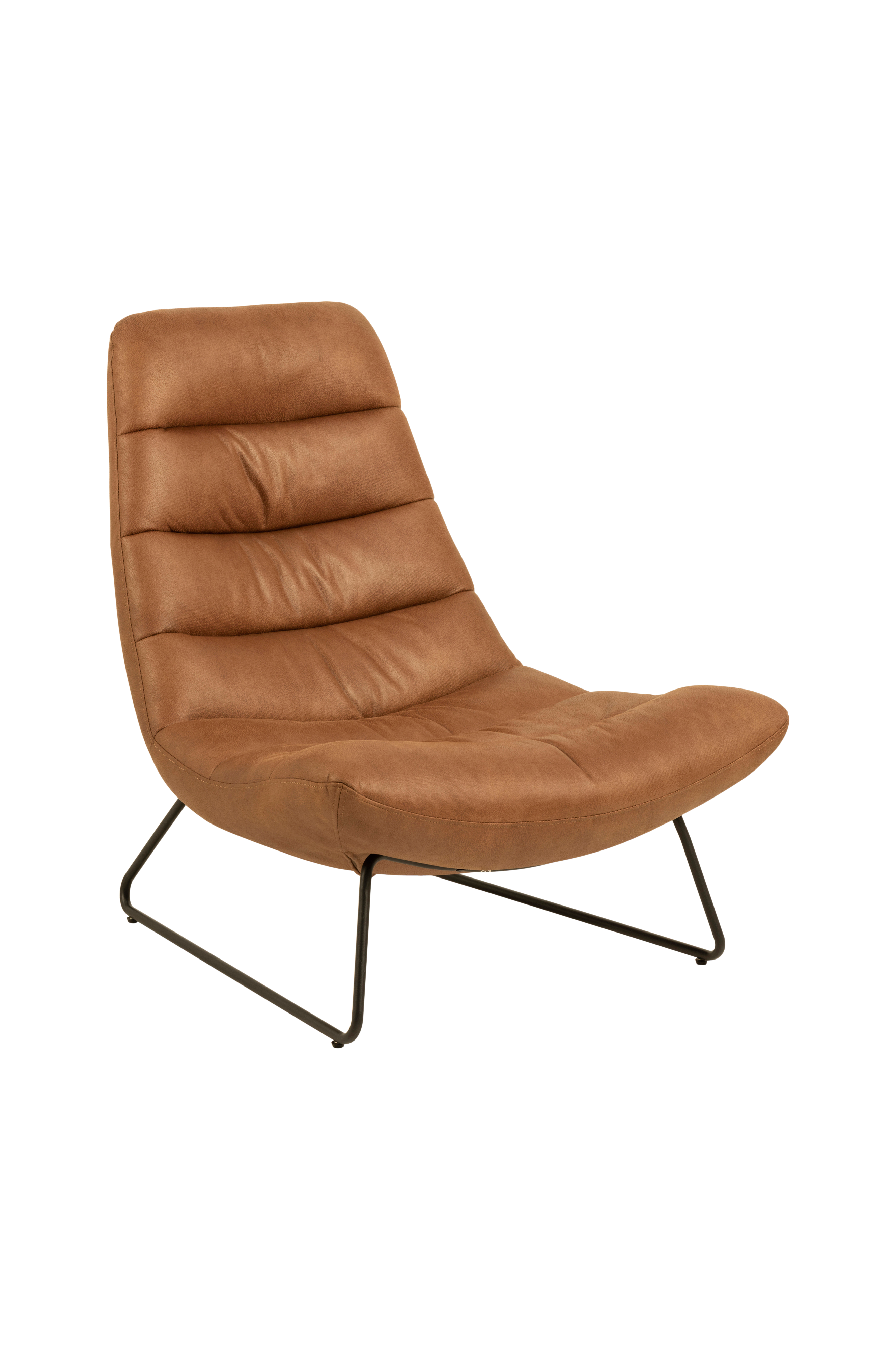 Trekk pusten dypt og koble av i den loungestolen. Den bøyde formen gir topp komfort og et unikt utseende som fanger gjestenes oppmerksomhet. Skinn gir stolen en moderne stil, mens beina utgjør et industrielt innslag. Leveres delvis montert.