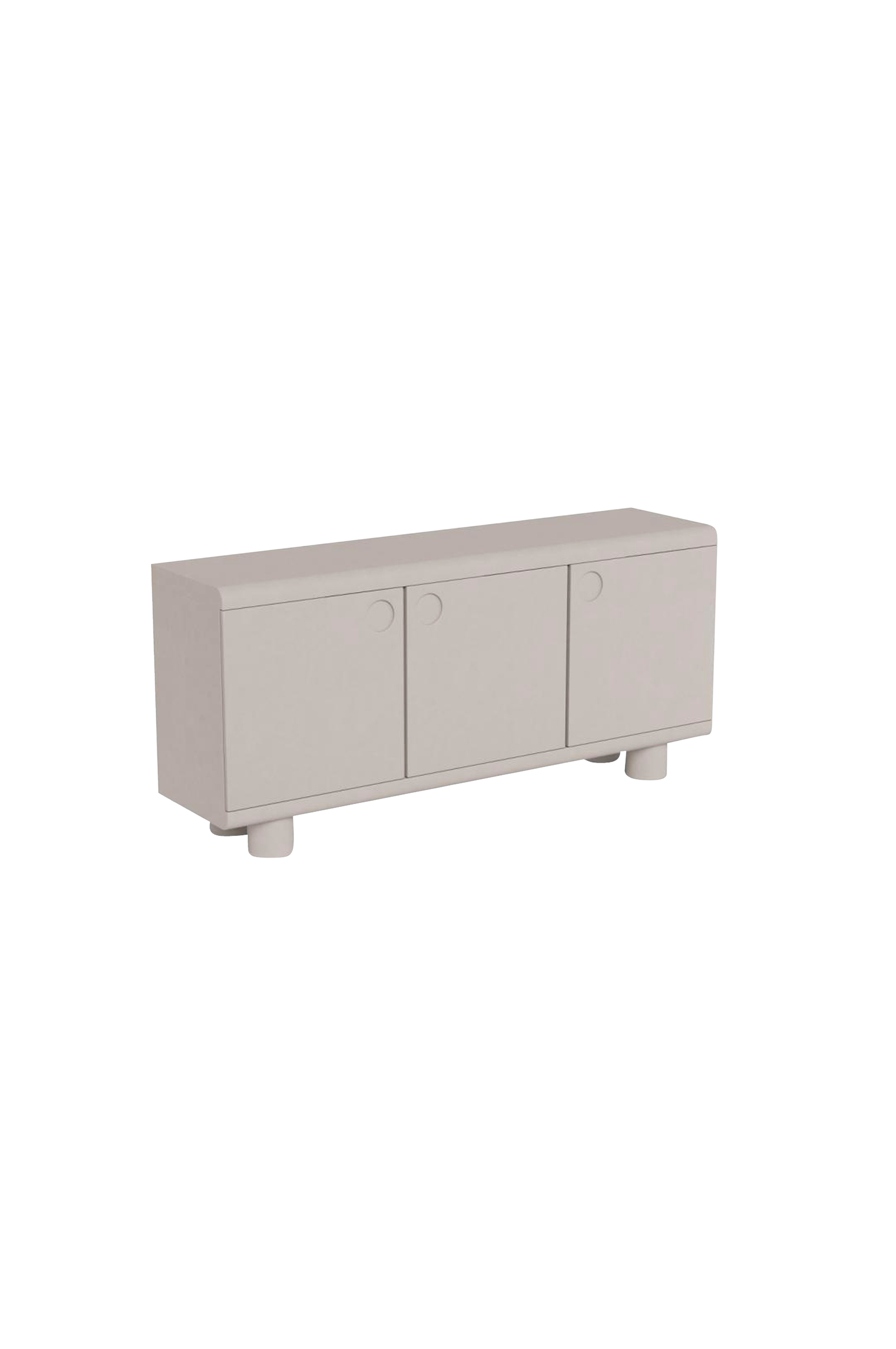 Denne skjenken skiller seg ut med sin lekne silhuett og elegante høyglansfinish. Med 3 dører og 3 hyller gir den rikelig med oppbevaringsplass, mens de avrundede detaljene setter prikken over i-en. Et møbel som gir både funksjon og karakter til spisestuen eller oppholdsrommet.