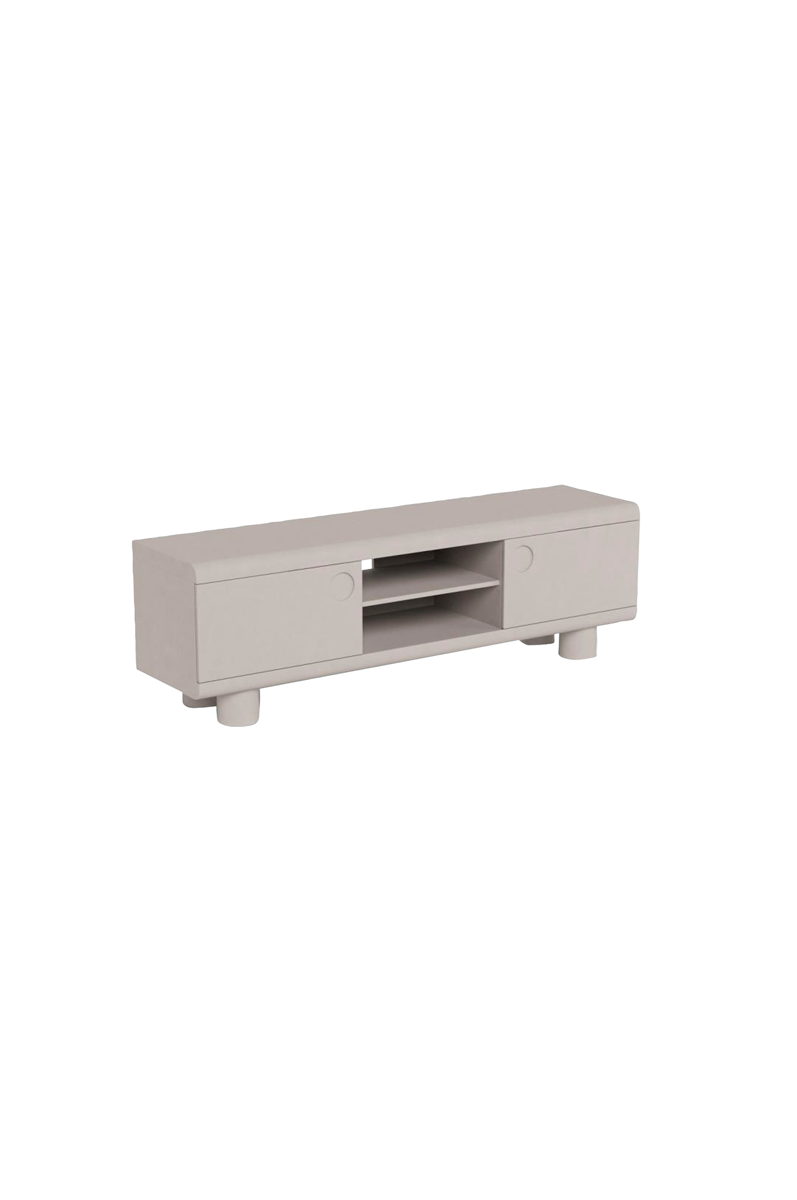 Denne tv -enheten skiller seg ut med sin lekne silhuett og dristige finish. Med 2 dører, 3 hyller og et åpent rom gir den rikelig med oppbevaringsplass, mens de avrundede detaljene setter prikken over i-en. Et møbel som tilfører både funksjon og karakter til tv.