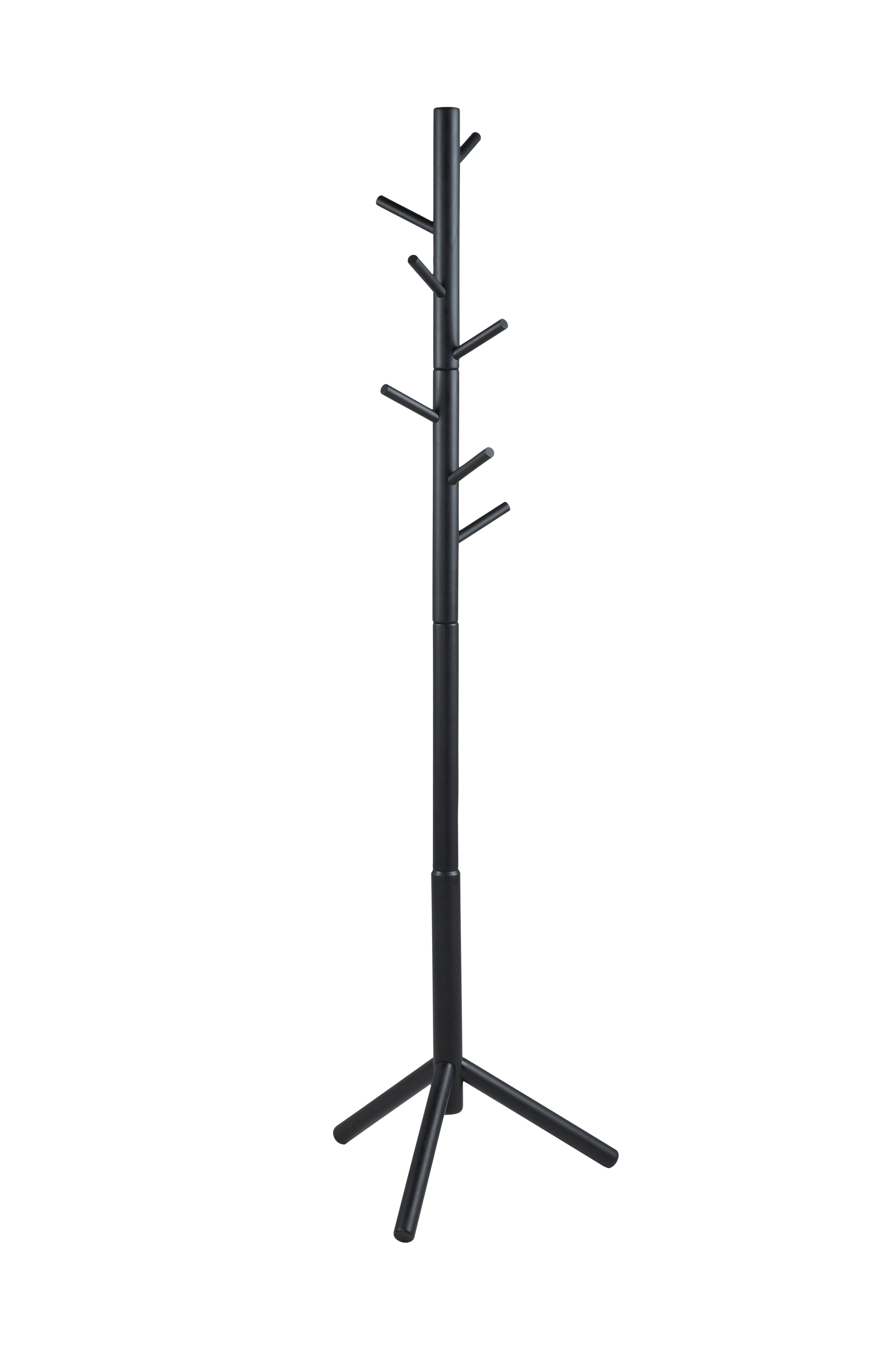 Stumtjener av lakkert gummitre. 7 knagger, knaggenes lengde 11,5 cm. Montér selv.