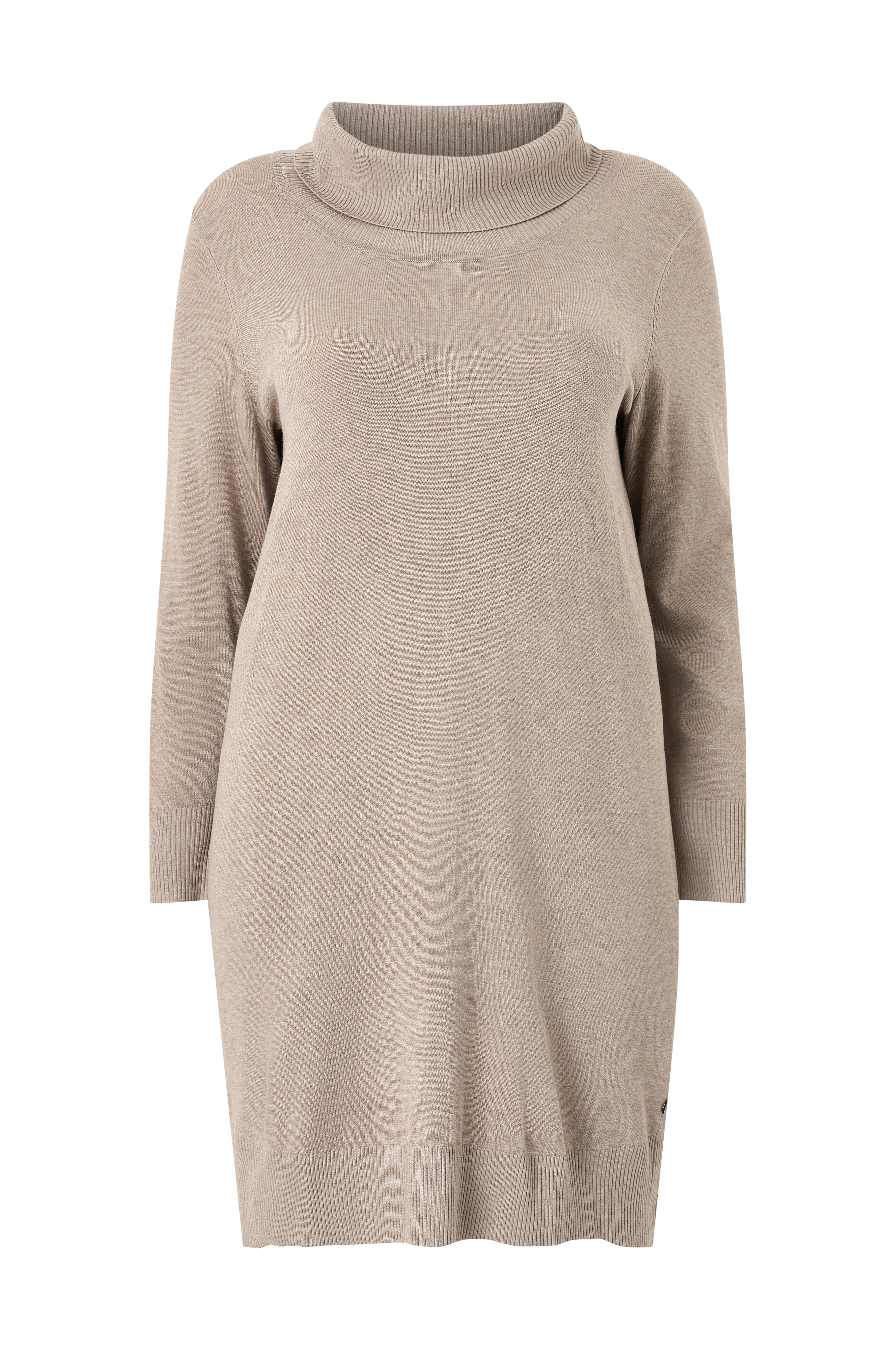 • Uformell, strikket kjole• Høy, bred, sammenleggbar krage• Langt erme med ribbet mansjett med tre knapper• Lite skjær med knapper nedover ryggen• Ribbestrikk på bunnen• Plusstørrelser• Lengde: 105 cm i størrelse S
