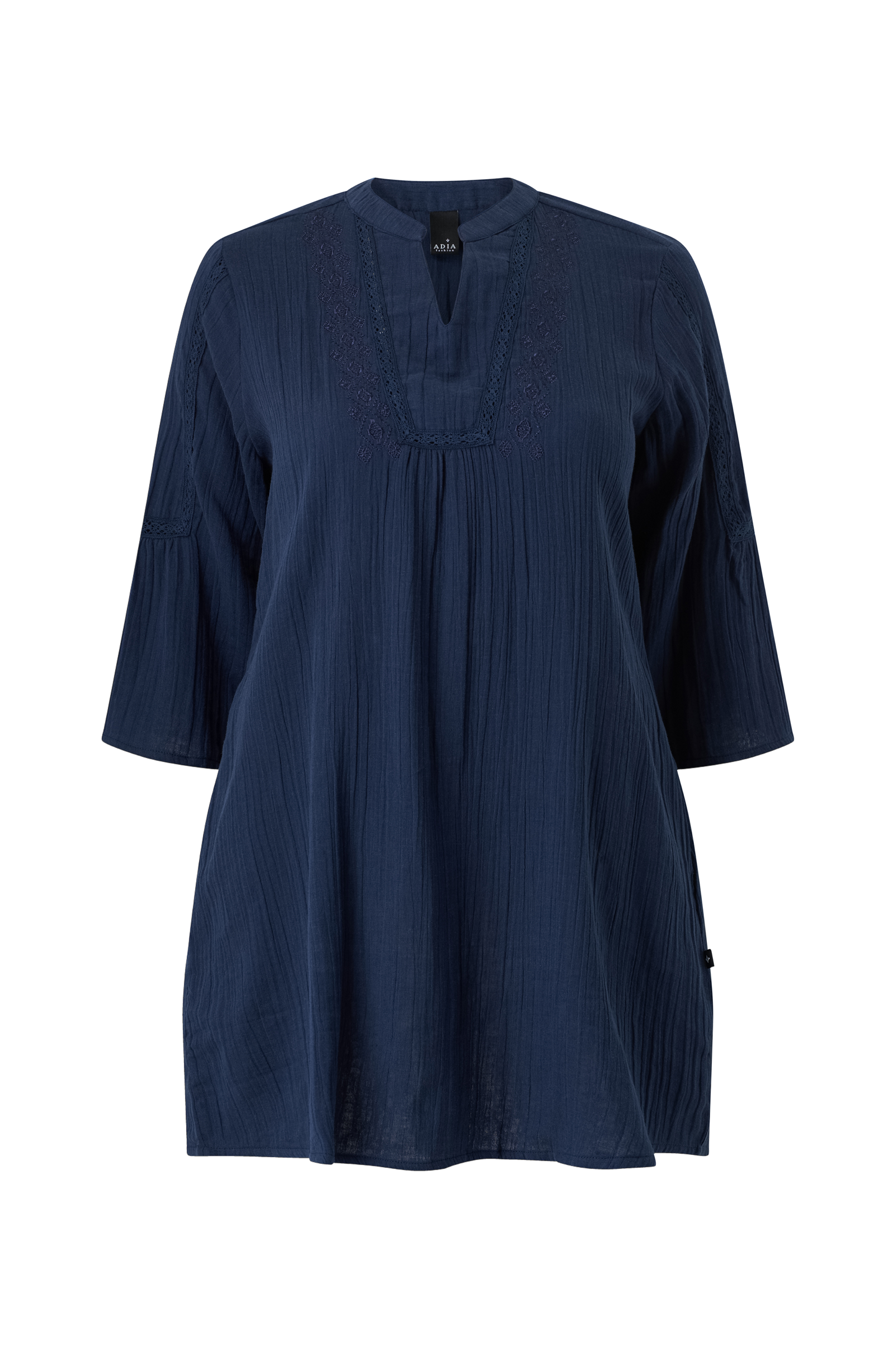 • Tunika i myk, mønstret bomullskvalitet• Brodert mønster oppover foran• Blondedetaljer på ermene og foran• V-hals snitt• Brede ermer 3/4 lang• Pluss-størrelser• Lengde: 90 cm i størrelse S