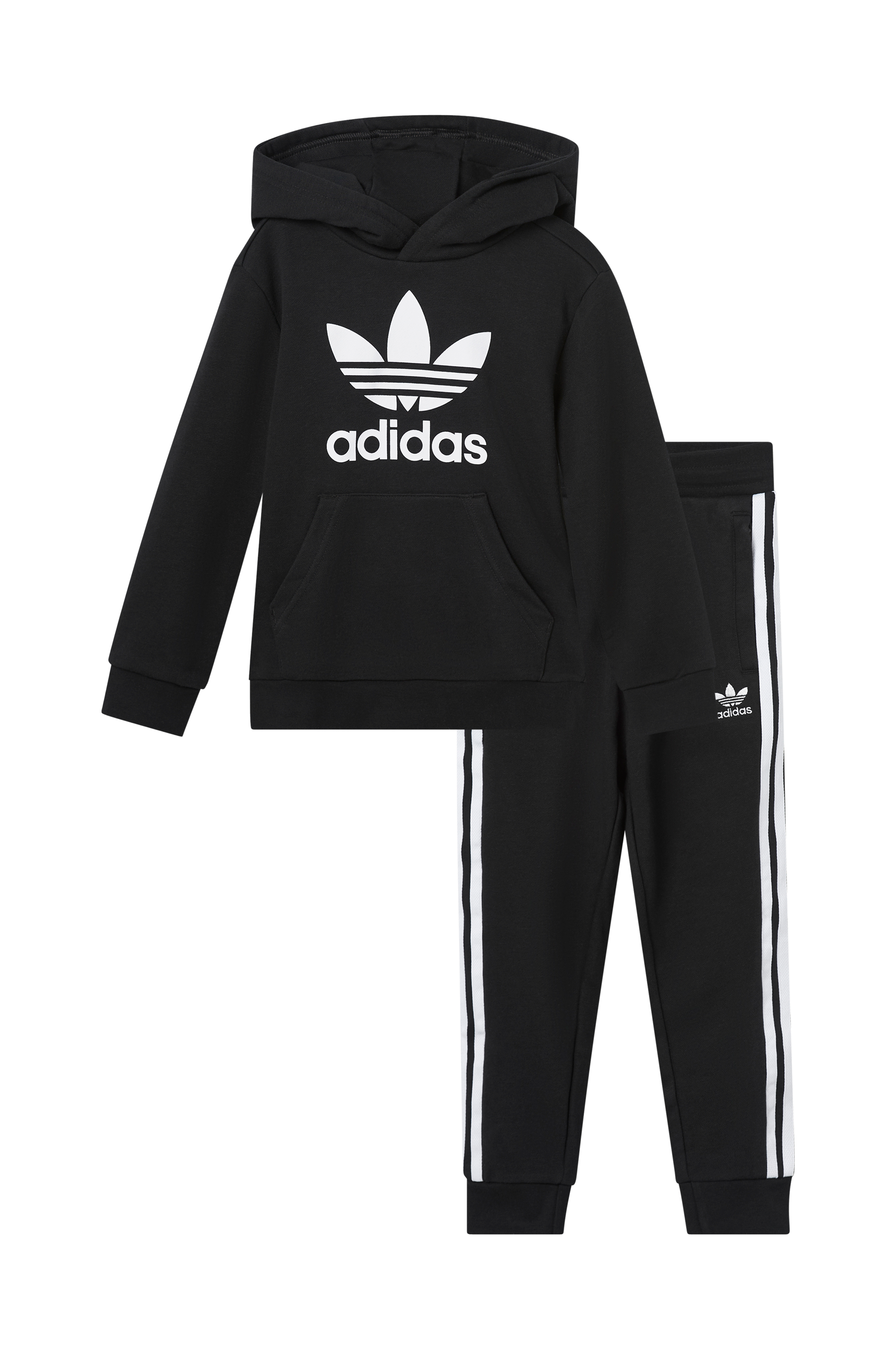 • 2-delt sett• Hettegenser med trykket logo foran• Magelomme• Ribbet mansjetter i ermeslutten og på bunnen• Sweatbukser med elastisk midje og snøring• Sidelommer med glidelås• Ribbet mansjetter i enden av benet
