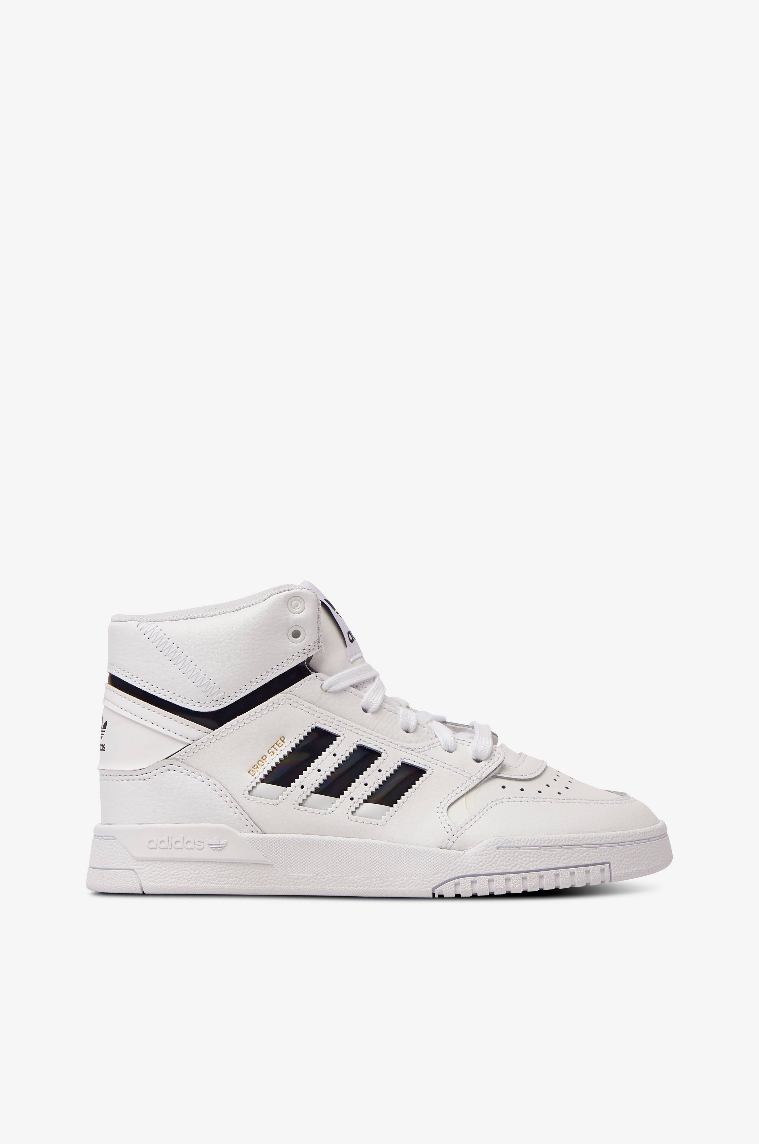 Sneakers Drop Step J fra adidas Originals, høye sneakers i basketinspirert retrostil. Overdelen kombinerer matt og blankt skinn for en teksturert look. Skaft og pløse er behagelig vatterte. EVA-kile i mellomsålen. Dempende OrthoLite® innersåle som er uttagbar. Yttersåle i gummi.