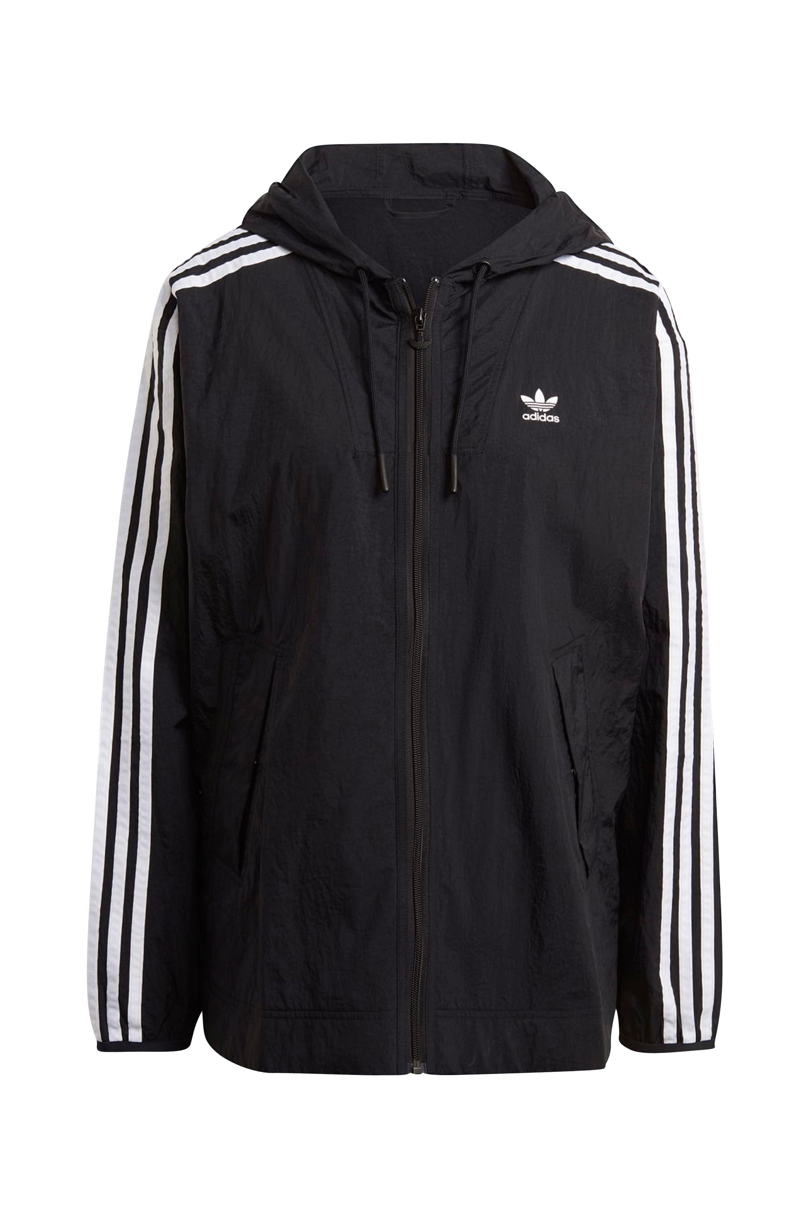 En klassisk vindjakke i luftig design med romslig følelse. Glattvevd materiale med ventilert rygg. Fast hette med snøring, glidelås og to lommer med trykknapp. Elastisk båndkant i ermekantene. Splitt i sidene og lengre bakstykke. Lengde bak ca. 77 cm i str 36.