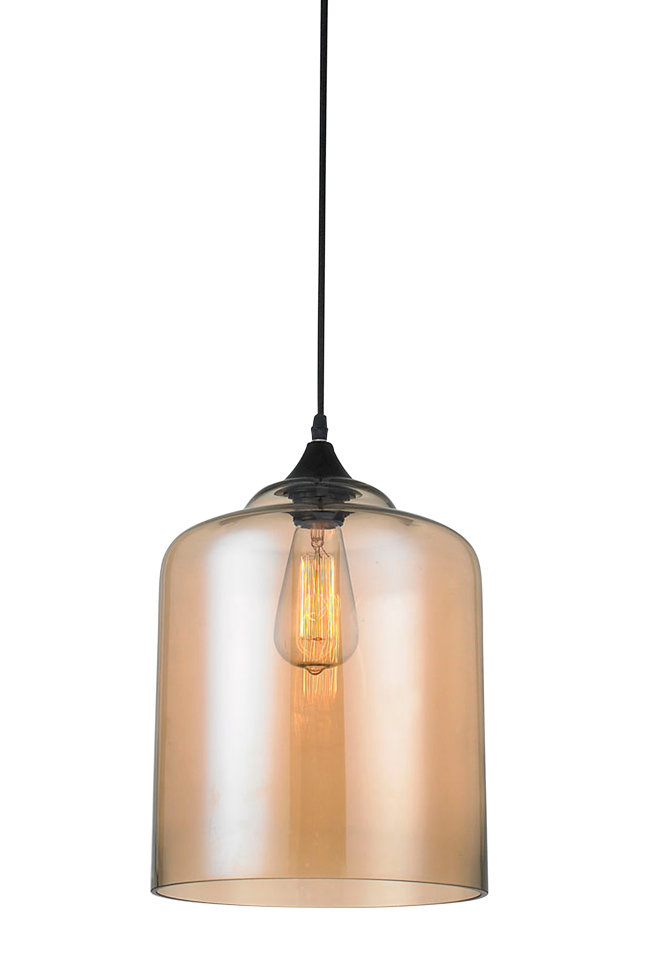 Taklampe i glass og metall. Takkopp med feste for takkrok. Svart og amber. 24 cm i diameter. høyde 30 cm. Stor sokkel E 27. Maks 40 W.