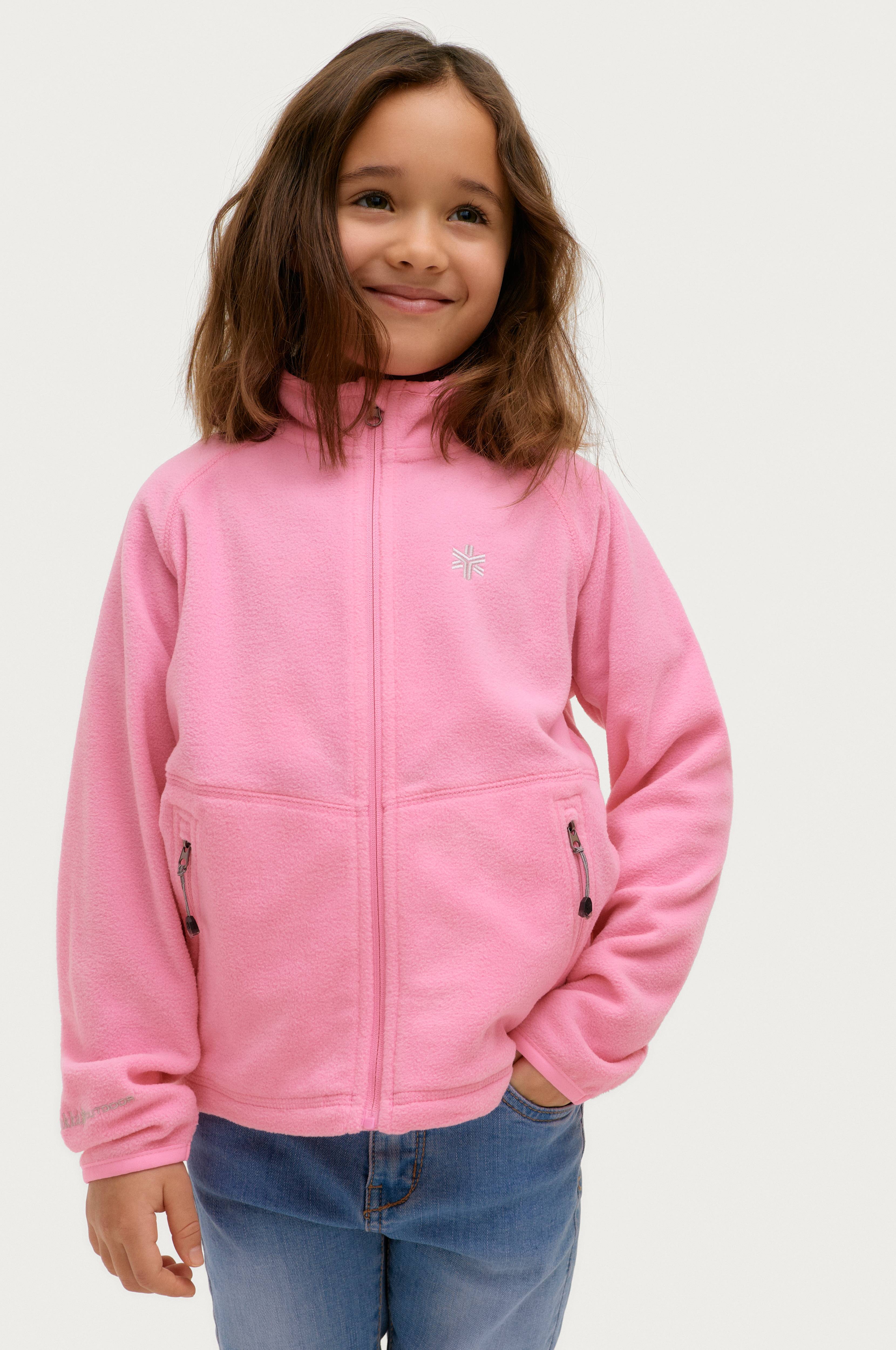 Smidig fleecejakke fra Áhkká i mikrofleece som varmer og leder bort fukt. Myk innside. Høy krage og glidelås med hakebeskyttelse. To lommer med glidelås. Brodert logo på brystet. Lag 2.