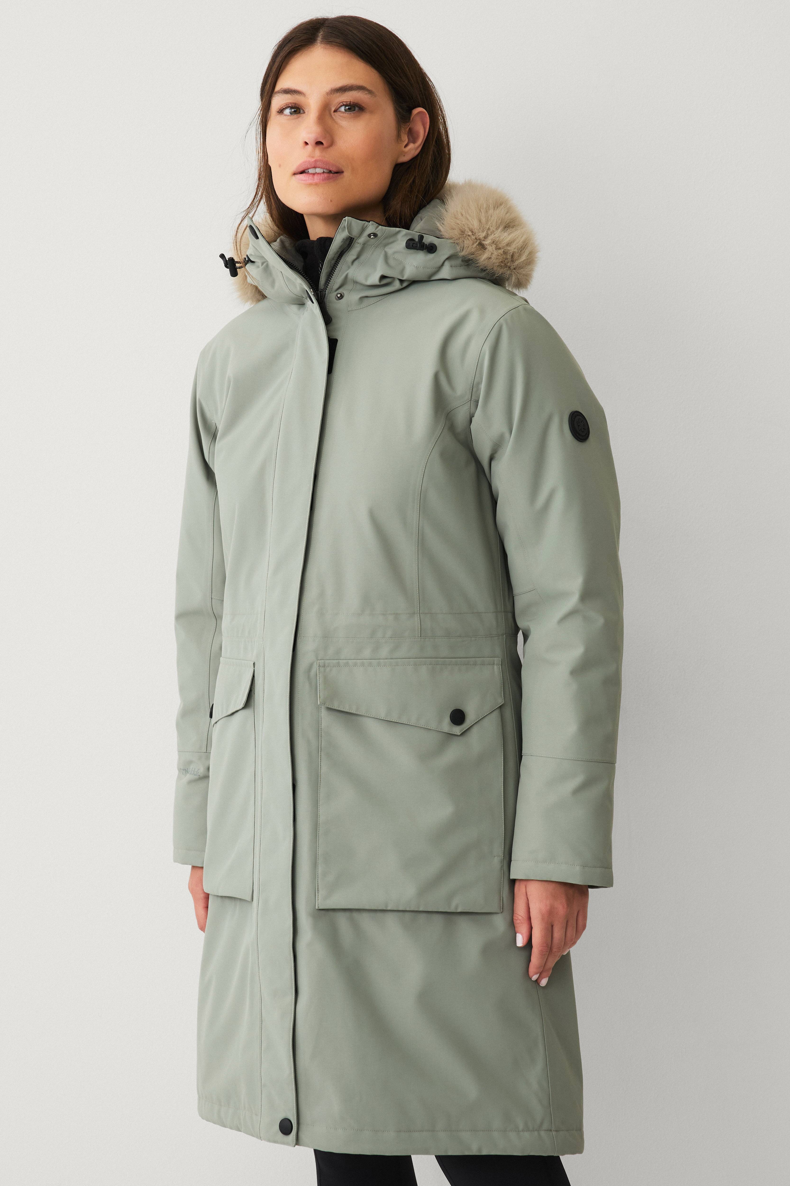 Elsker min nye jakke! Lang uten å være klumpete. Deilig å kunne stramme litt i midjen. Ekstra pluss for at den falske pelsen på hetten kan tas av. Mange gode lommer. Lange, behagelige mansjetter…