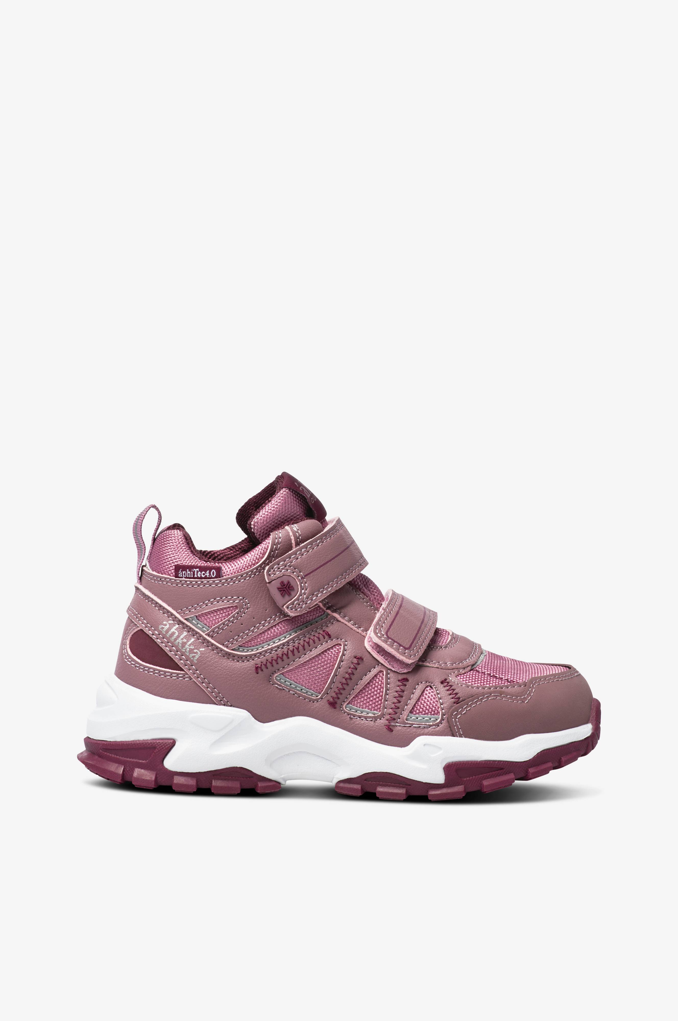 Vanntette sneakers / støvler fra Áhkká i tekstil og syntet med refleksdetaljer rundt. Gummiforsterket tå for bedre slitestyrke. Fôr i tekstil. To borrelåsremmer som justerer passformen perfekt. Vattert skaft og pløse. Uttagbar innersåle. Yttersåle med godt grep.