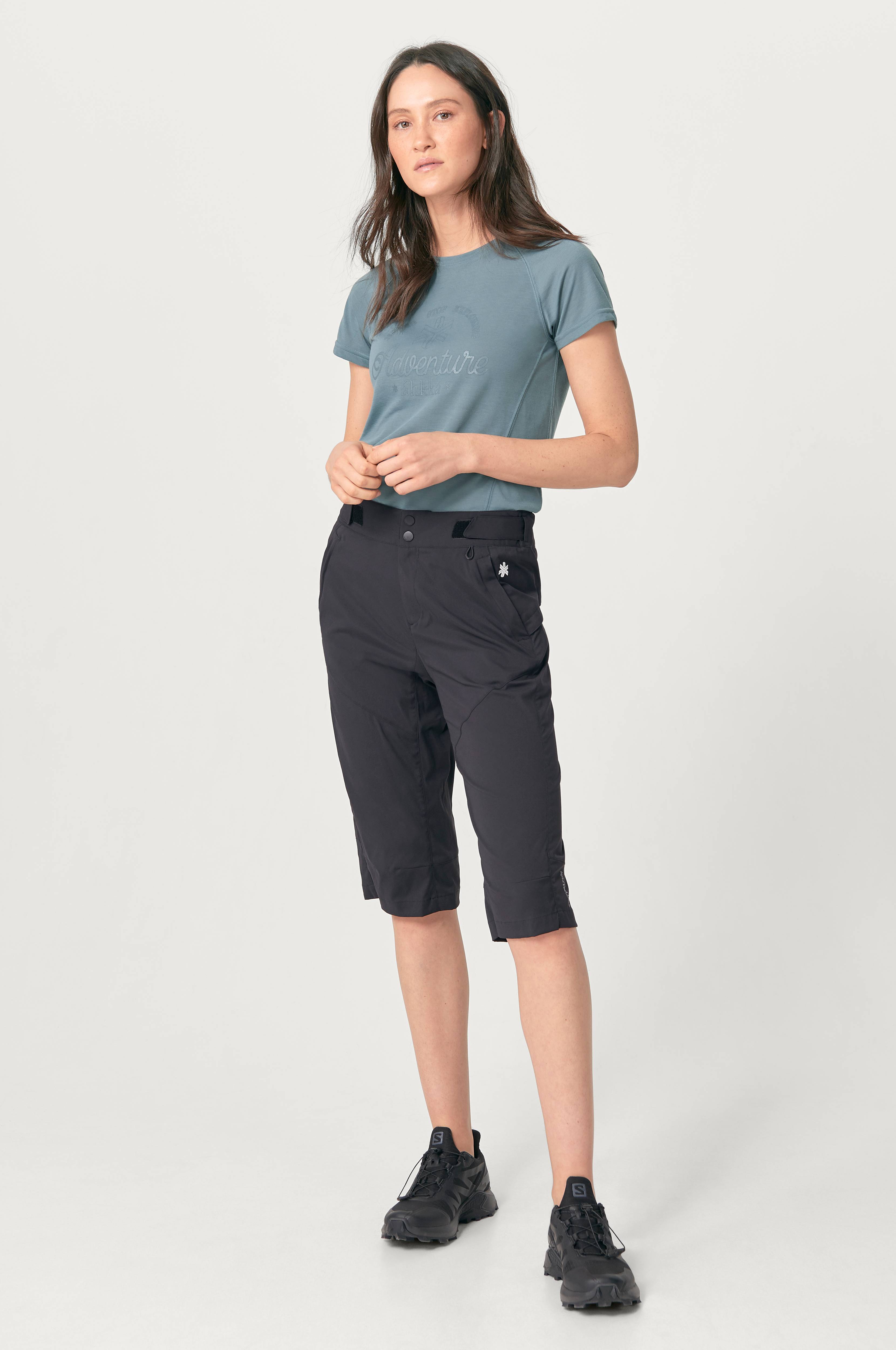 Funksjonell turbukse fra Áhkká i caprilengde. Vevd, lett kvalitet i stretch som gir herlig komfort og stor bevegelsesfrihet. Buksen er áphiTecQuick-behandlet for å være svært hurtigtørkende, noe som forhøyer plaggets funksjon da det tørker raskt om du blir våt eller svett. Det tørker også raskt etter vask, selv under vanskelige tørkeforhold. Et perfekt friluftsplagg når du vil være lett kledd ute, men likevel være aktiv på f.eks. fjell- eller kajakkturen.