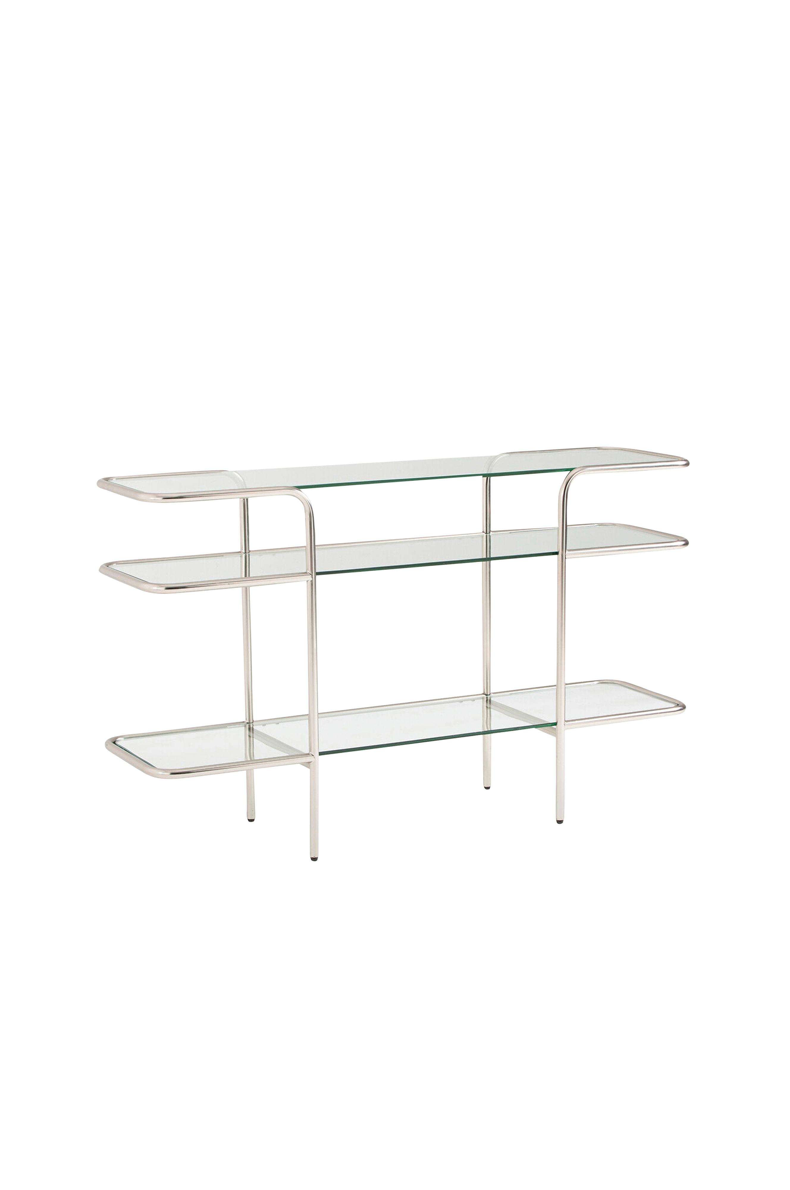 Inspirert av 1930-tallets internasjonale stil og den modernistiske bevegelsens funksjonalisme, markerer Molna tilbakekomsten av den industrielle estetikken med rørformede møbler og transparent glass. I medium størrelse og avrundede hjørner kan Molna brukes både som avlastningsbord og liten bokhylle. Den satinerte nikkelfinishen, det tykke, herdede glasset og den luftige designen gir det et ettertraktet utseende. Eksklusivt produkt fra AM.PM.