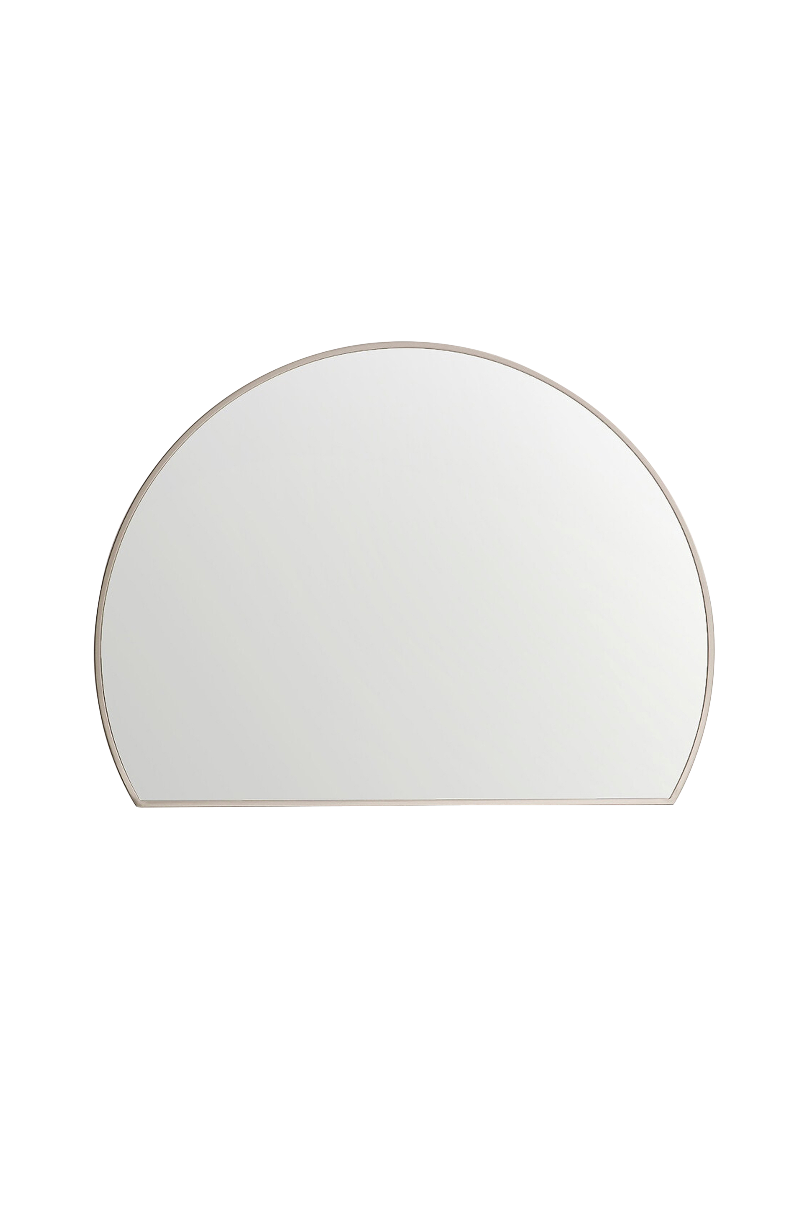 Speilet Caligone i form av en avskåret halvsirkel har enkle linjer og metallkant med satinert nikkel-finish.