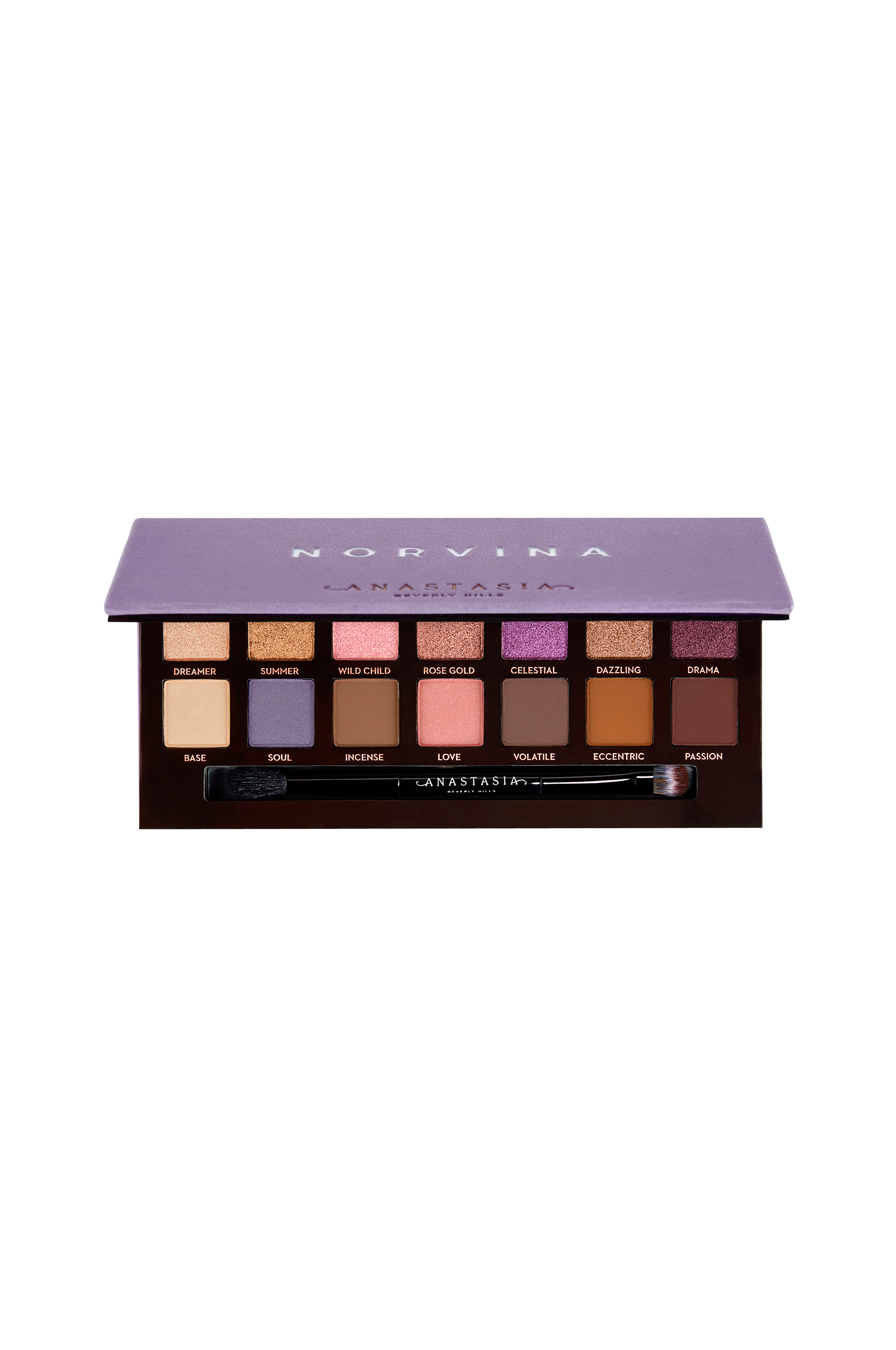 Norvinas øyenskyggepalett består av 14 nyanser fra dype og lyse matte til myke og skimrende pasteller.