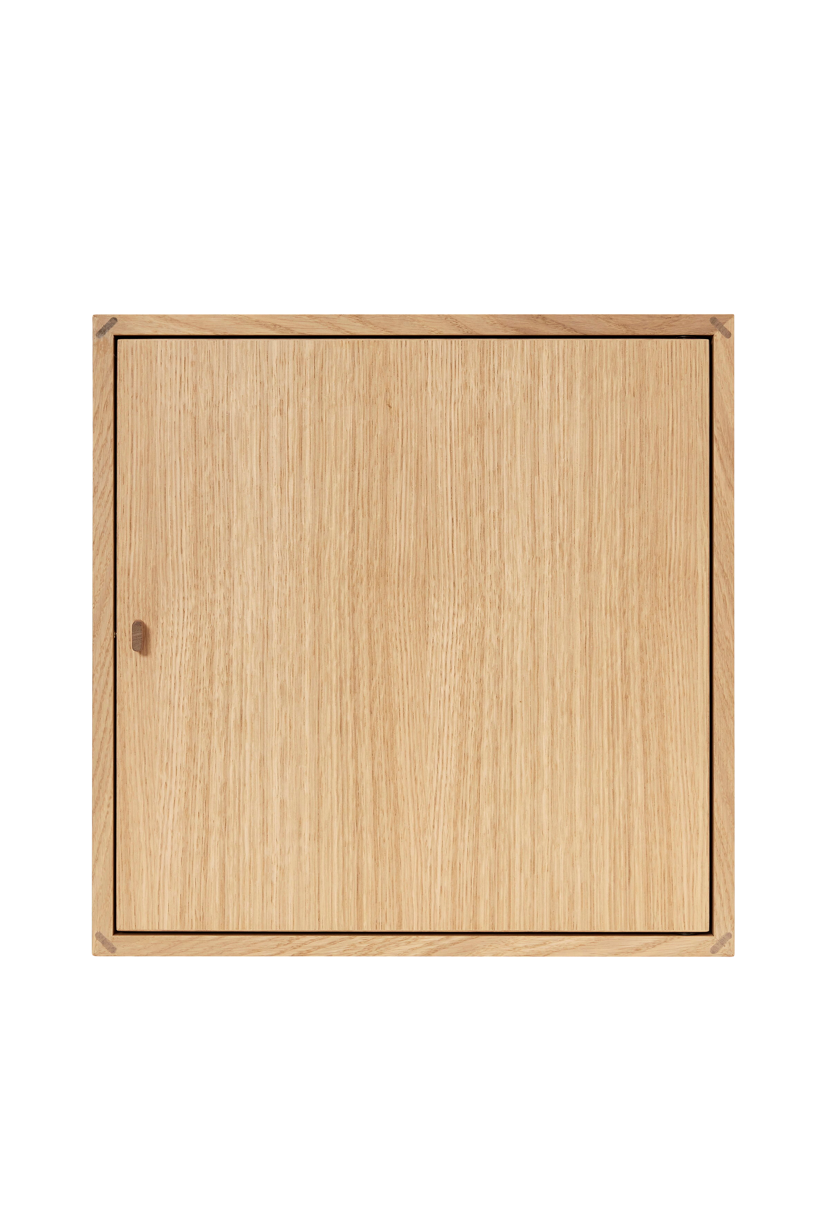 S10 Signature Module, med dør. Signature-modulene er allsidige møbler, både som en skulpturell og funksjonell del av hjemmets dekor. De firkantede modulene kan settes i ulike kombinasjoner bare med de 2 ulike modulene og hyller, som kan plasseres forskjellig i hver modul. S10 Signature-modulene er laget i eikefinér med detaljer i valnøtt. For hver skuff følger 4 messingskruer med for montering.