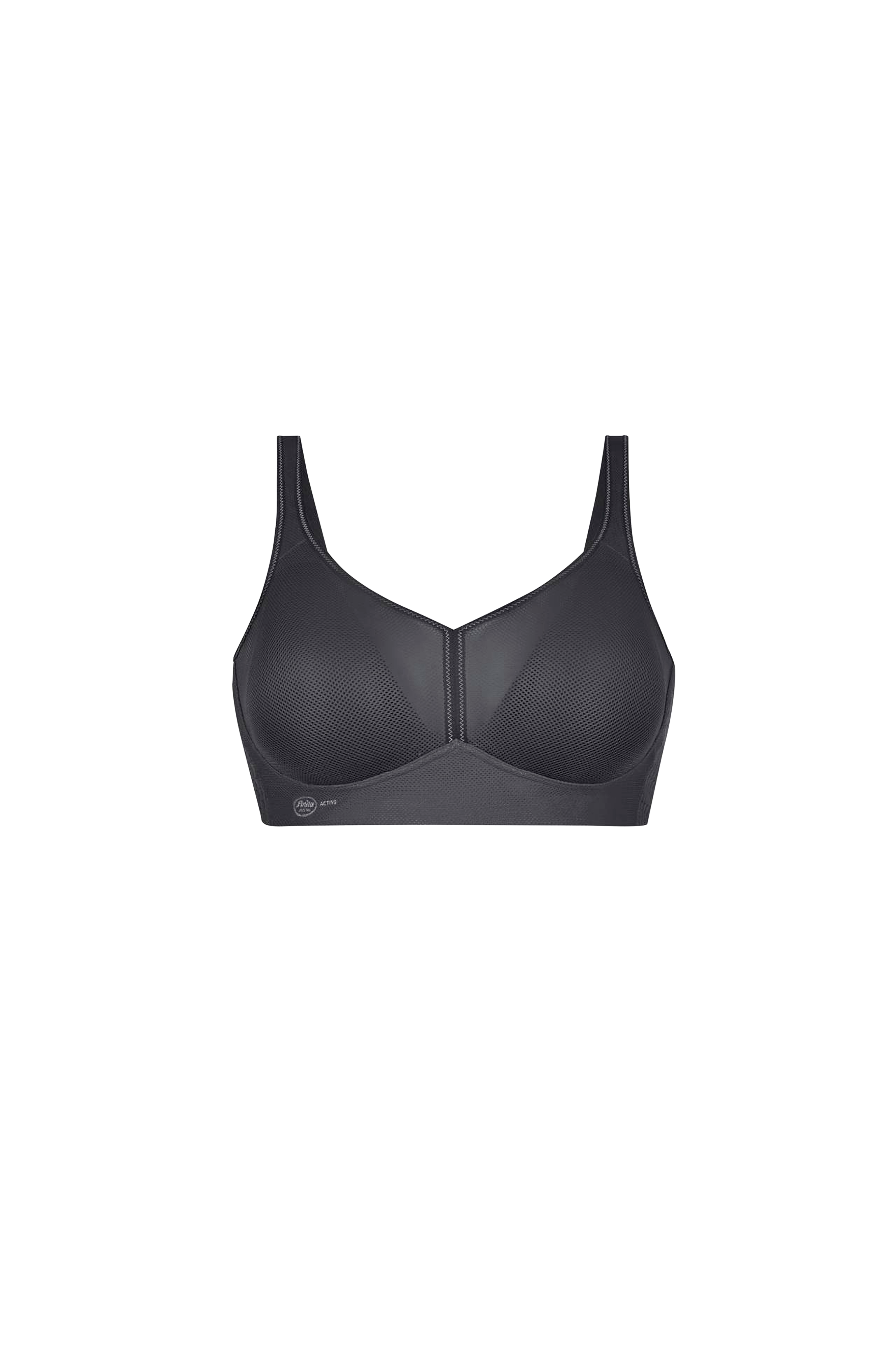 Sports-bh i mesh med tynn, trekantet vattering som gir god støtte. Produsert i mikrofiber, et ekstremt tynt materiale som puster. Lett vatterte skulderbånd for komfort, og bred hektelukking i ryggen. God fuktavledende evne.