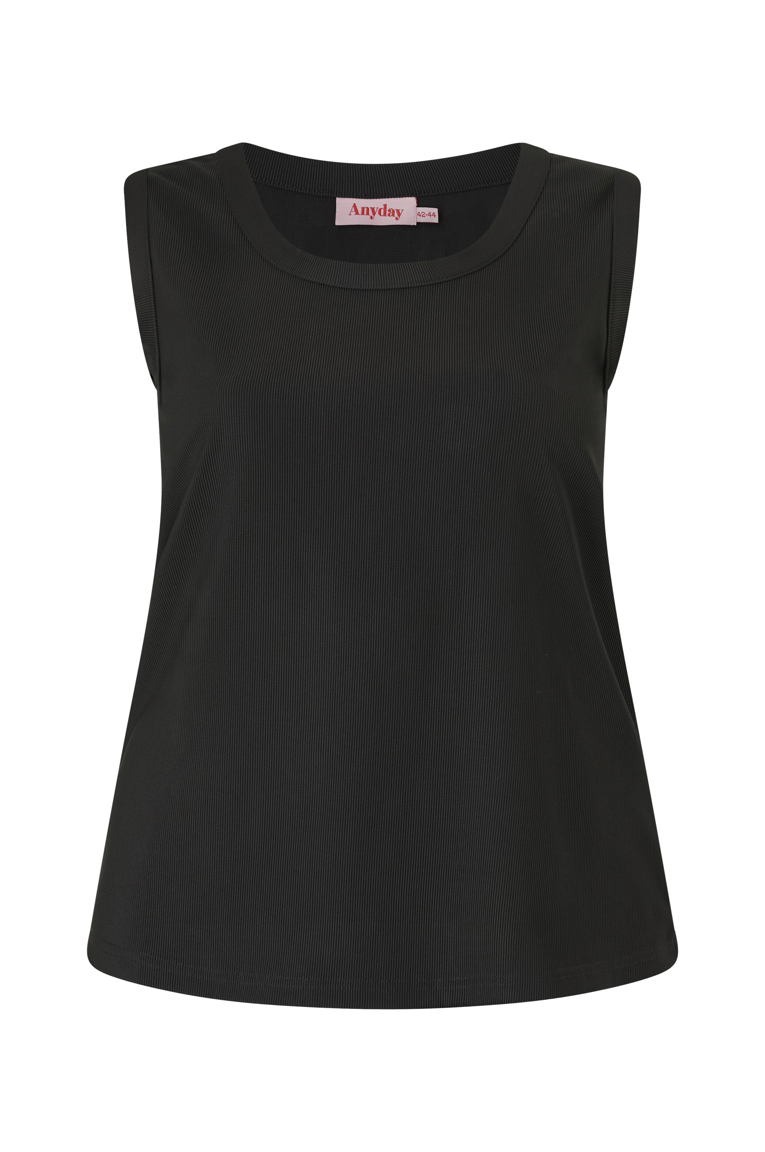 • Ermløs topp i ribbet, myk polyesterblanding med avrundet hals• Normal passform• Ribbet kant rundt ermeåpningene og rundt halsringningen• Plusstørrelse