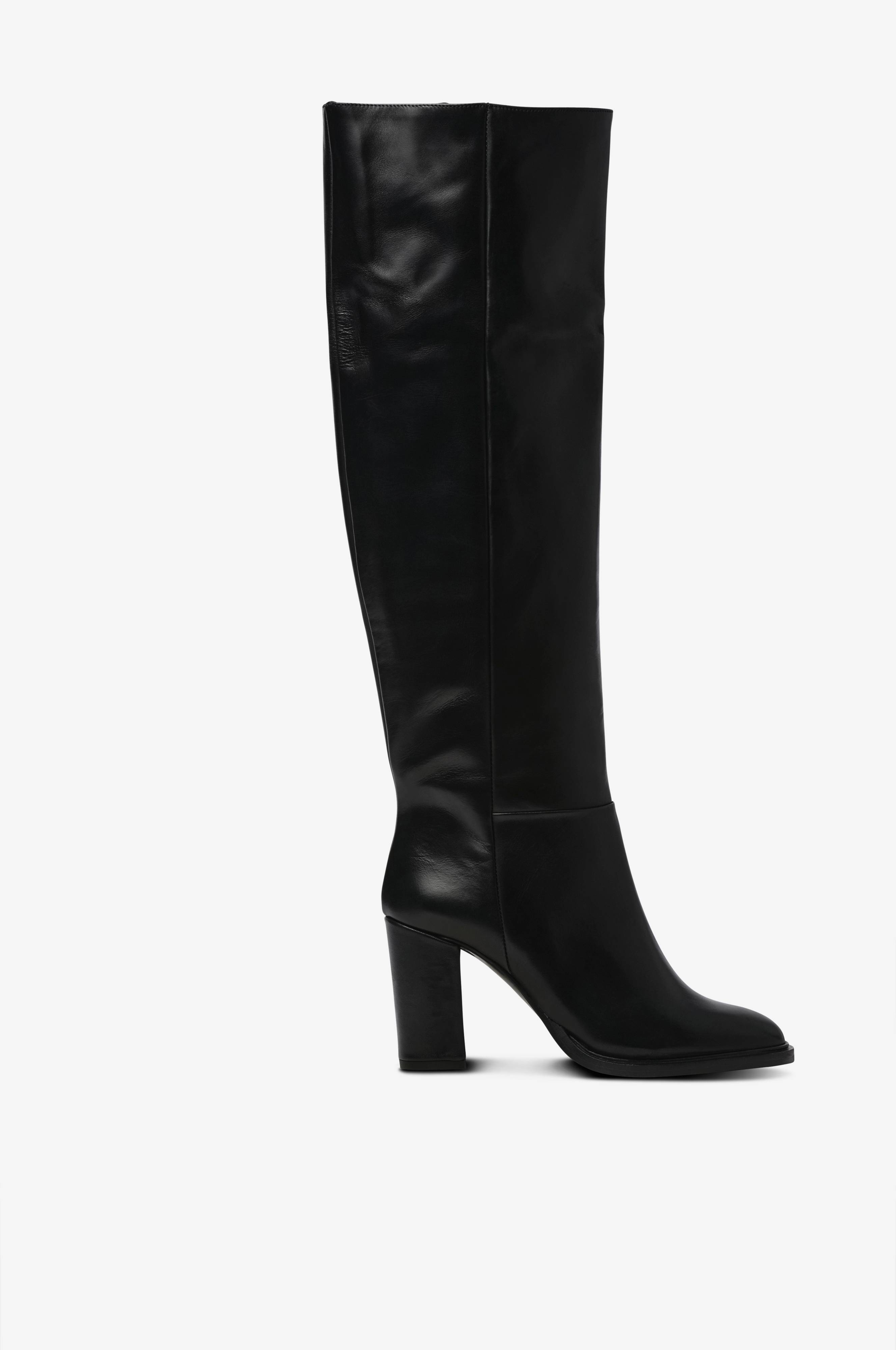 • Støvler i skinn• Spiss tåform• Glidelås på innsiden av skaftet• Foring i skinn• Kledd kilehæl• Hælhøyde: 8 cm• Skafthøyde: 45 cm i størrelse 37