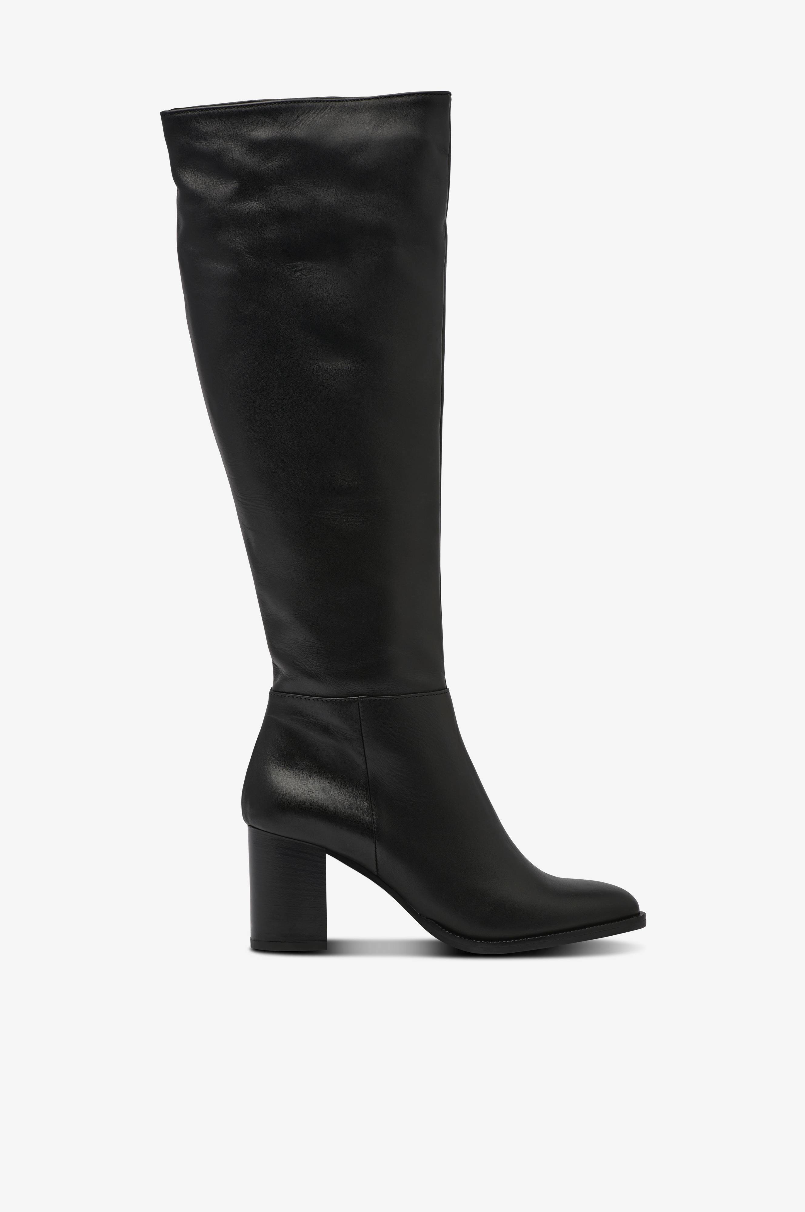 • Modell i skinn• Avrundet tå• Høyt skaft med glidelås på innsiden• Skinnfôret• Skafthøyde: 43 cm i størrelse 37• Hælhøyde: 7,5 cm
