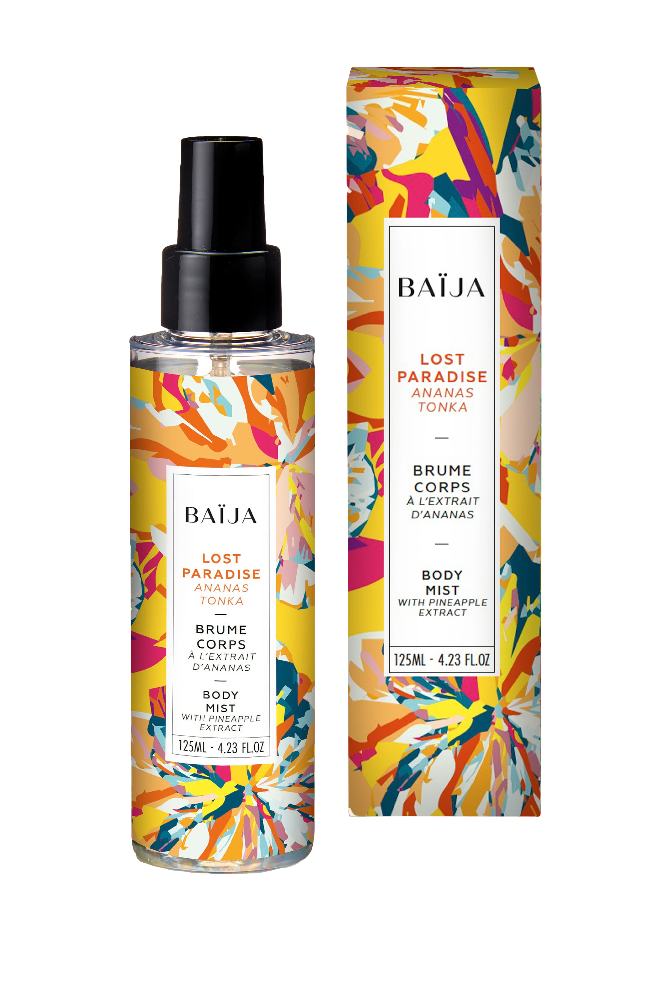 Lost Paradise bodymist med duft av ananas og tonka, inneholder oppløftende ananasekstrakt for en eksotisk stund. Den følger deg hele dagen, den frisker opp og fukter huden samtidig som den har en uimotståelig duft. Den absorberes raskt og gir ingen våt følelse på huden.