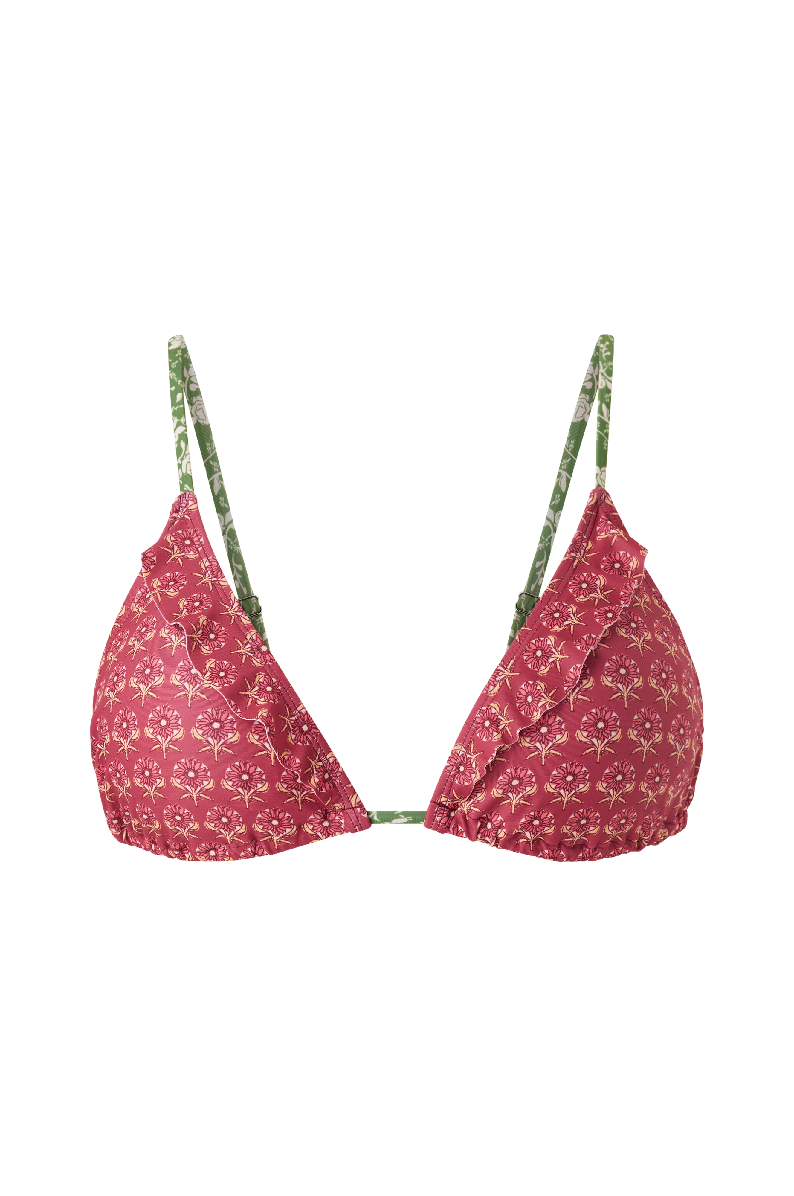 • Triangelformet skål med fjernbar polstring• Volanger på toppen av koppen• Justerbare skulderstropper med knytbar tråd i ryggen