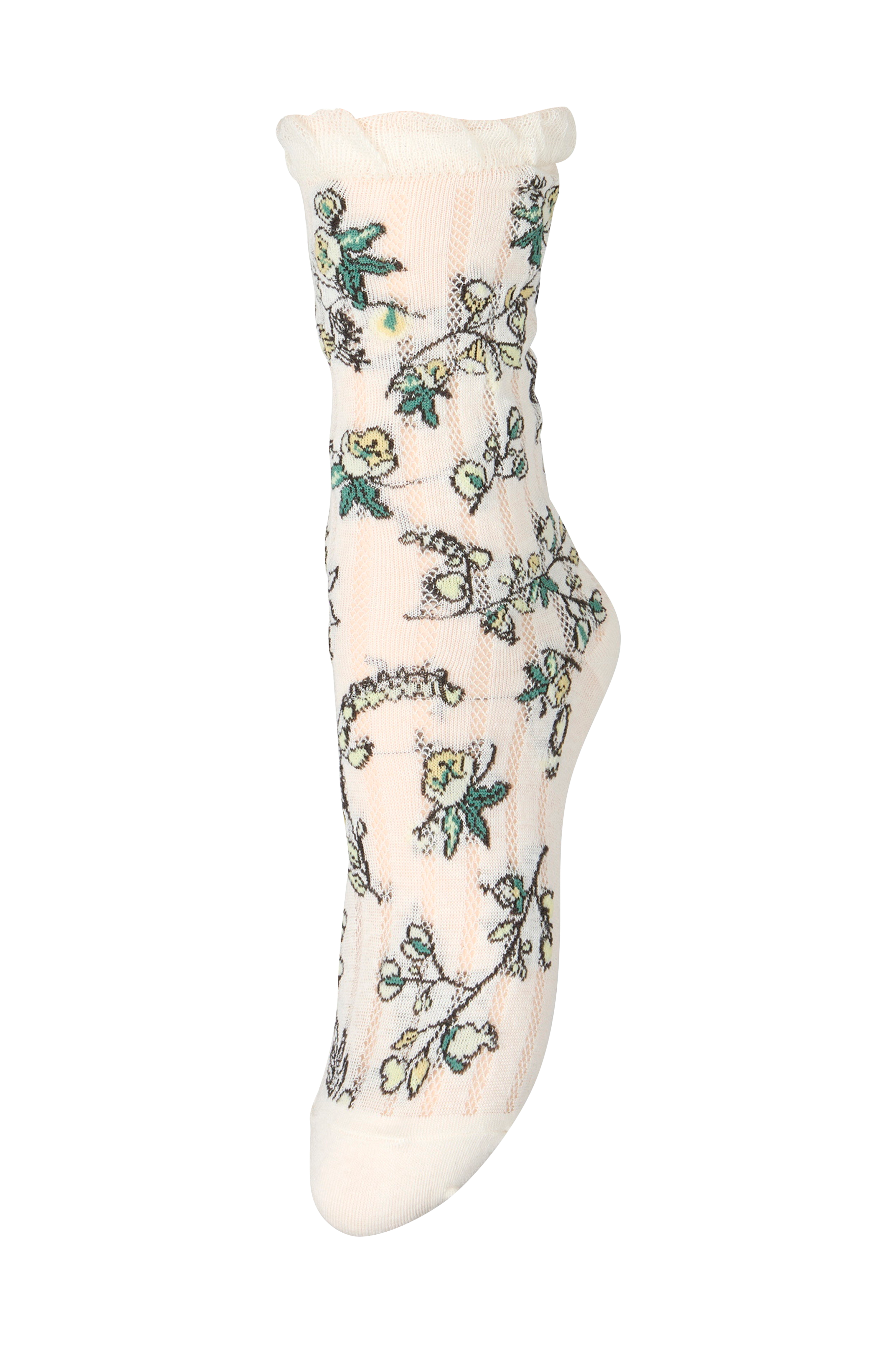 • Mønstrete sokker i bomullsblanding• Løsstrikkete detaljer• Bølget kant på toppen