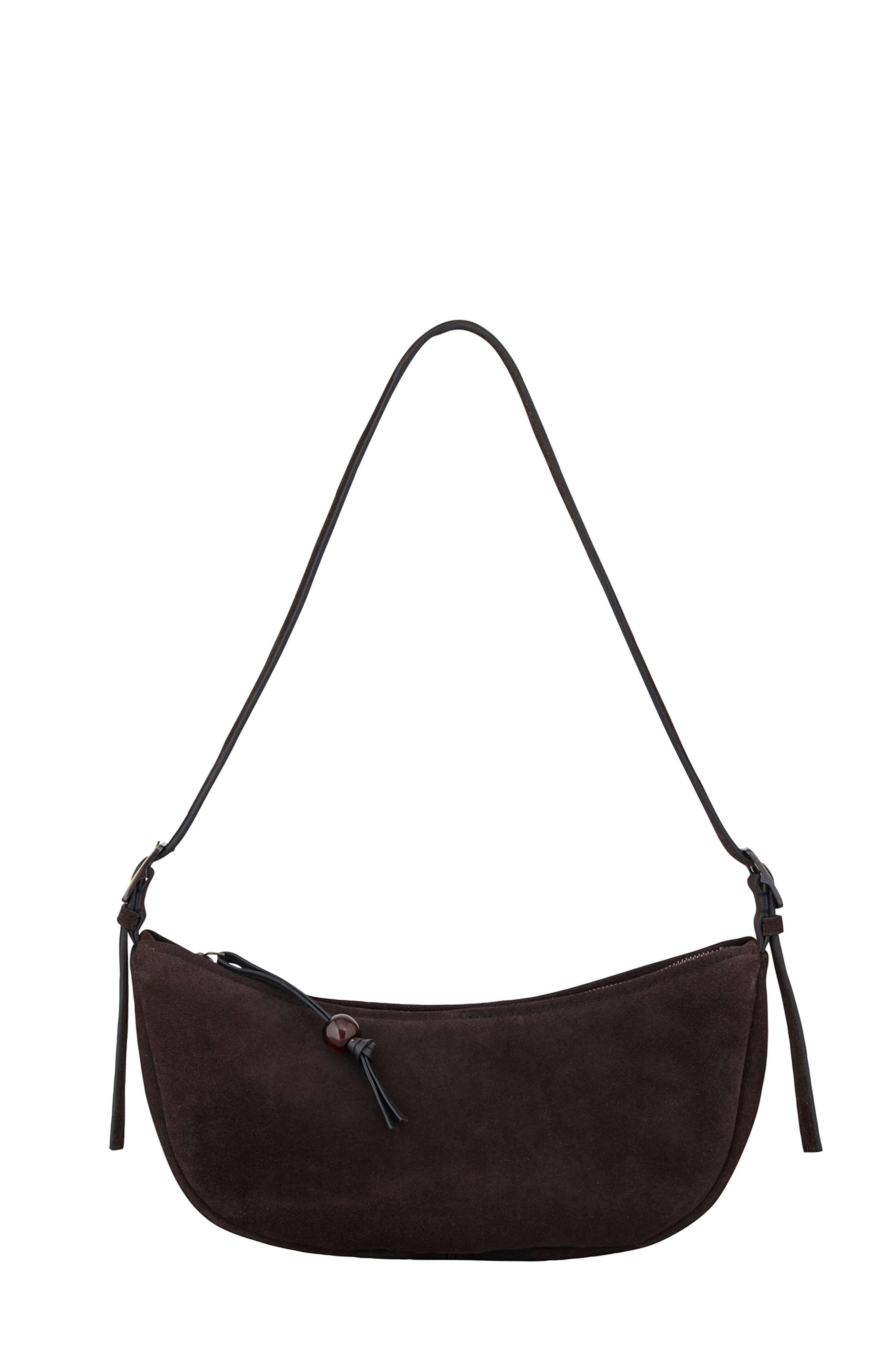 • Vesken i semsket skinn• Justerbar skulderstropp• Hovedlomme med glidelås• Stripete tekstilfôr på innsiden• En innvendig glidelåsrom• Mål: 29 x 14 cm