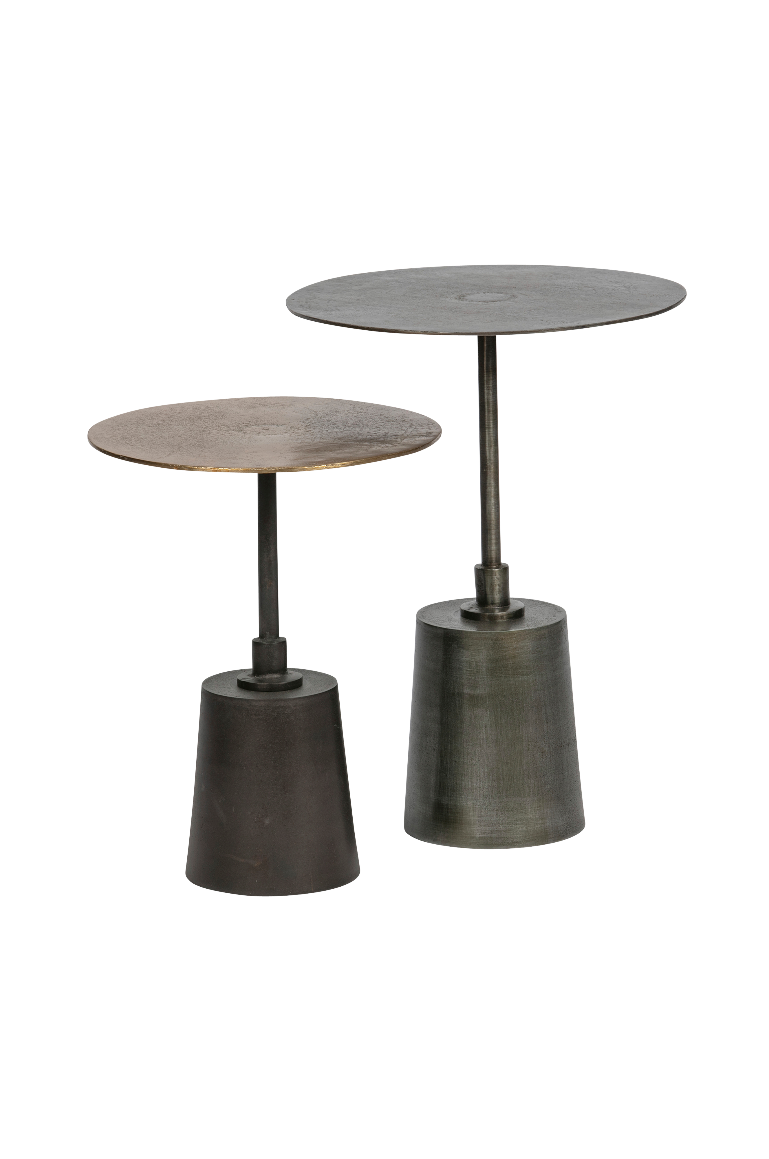 Det minste sidebordet i antikk messing har en blokk på Ø 17,8 cm med en høyde på 20 cm. Benet er Ø 2 cm, høyde 25,5 cm. Benets totale høyde er derfor 45,5 cm. Bordplatens tykkelse er 0,5 cm. Det største sidebordet i antikk sølv har en blokk på Ø 19 cm med en høyde på 22,8 cm. Benet er Ø 2 cm, høyde 32,5 cm. Den totale høyden på benet er derfor 55,3 cm. Bordplatens tykkelse er 0,5 cm. Maksimal bæreevne for Crush sidebord er 12 kg per bord.