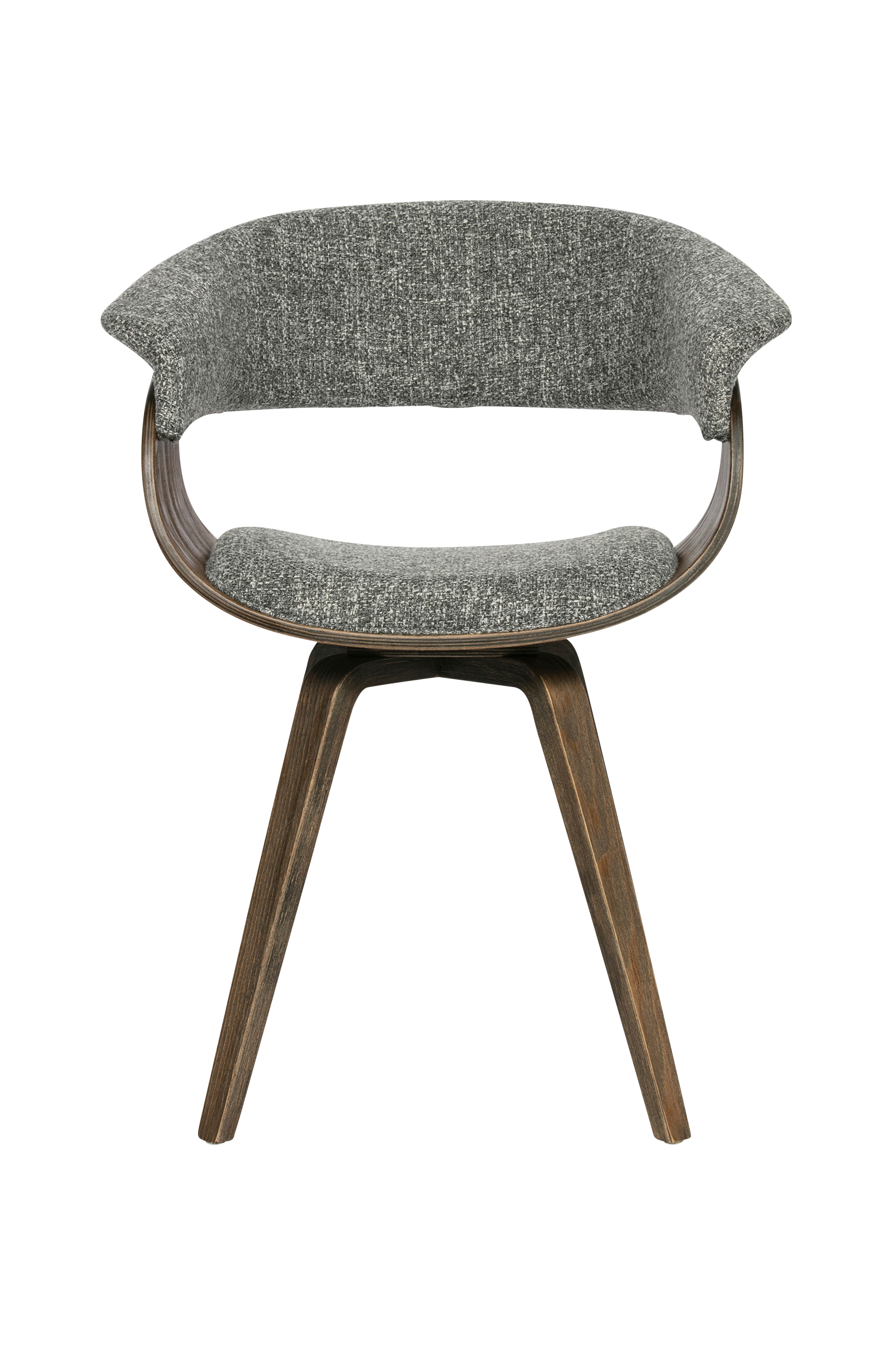 Stol med ramme av kryssfiner kledd med stoff av 100% polyester.Ben av kryssfiner med finerfinish.Skum på sitteflate: 24 kg / m³Skum bak: del 24kg / m³ + 18kg / m³.Spisestol Catch veier 7 kg.