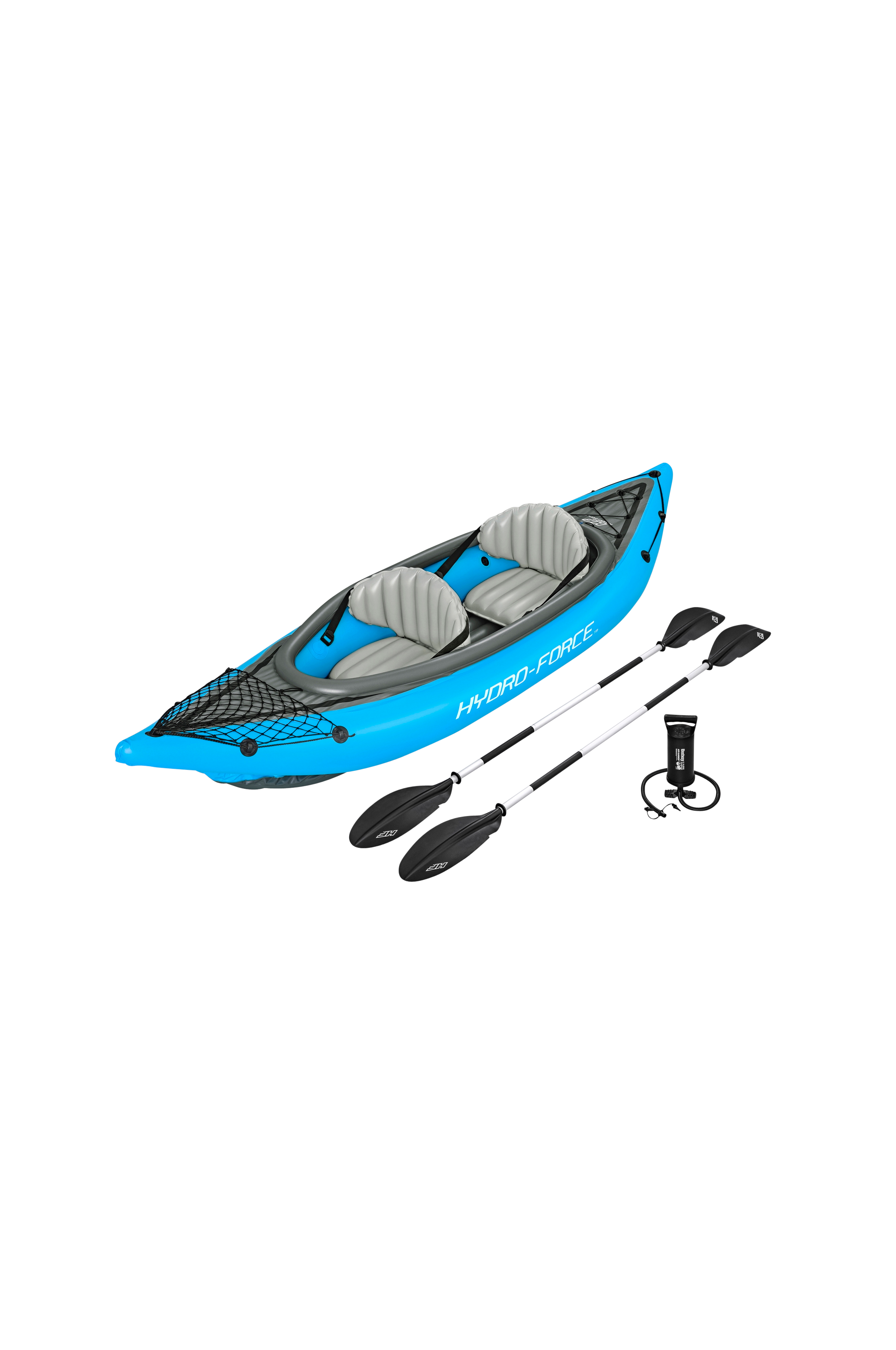 Ta deg ut på vannet med Hydro Force Cove Champion X2-kajakken. Denne oppblåsbare farkosten gjør det enkelt å utforske innsjøer, elver og hav. Kajakken leveres komplett med et par padleårer, en håndpumpe og et reparasjonslakk, og har punkteringsbestandig materiale og justerbare seter for maksimal komfort. Den har rikelig med oppbevaringsplass og er lett å manøvrere med to finner. Kajakken passer for to voksne og har en total kapasitet på 180 kg, og den praktiske bærevesken gjør transporten til en lek. Utforsk uten problemer med dette fullt utstyrte kajakksettet.