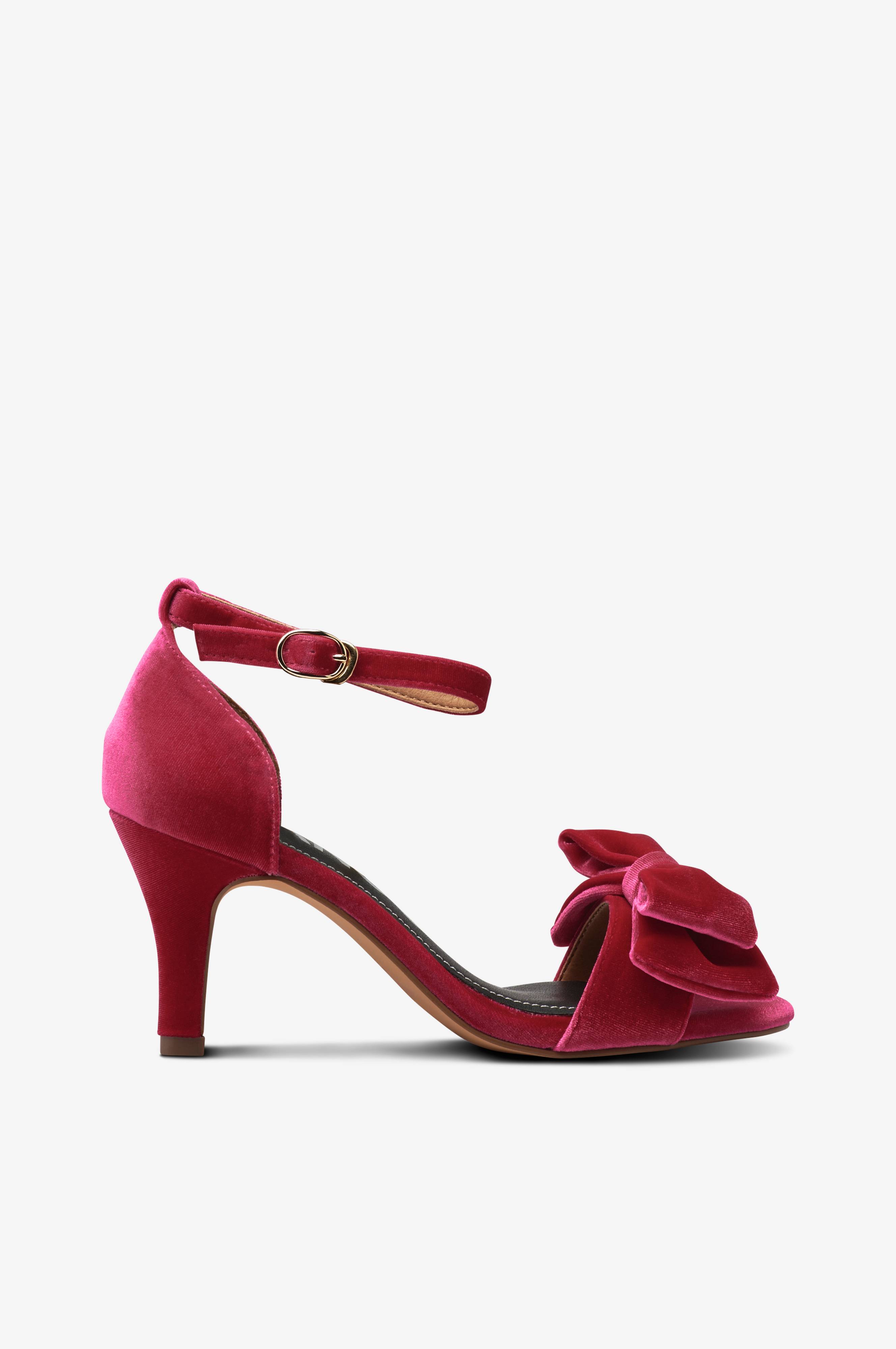 • Pumps i fløyel• Sløyfe foran• Dekket hæl• Stropp med spenne ved ankelen• Hælhøyde: 7,5 cm