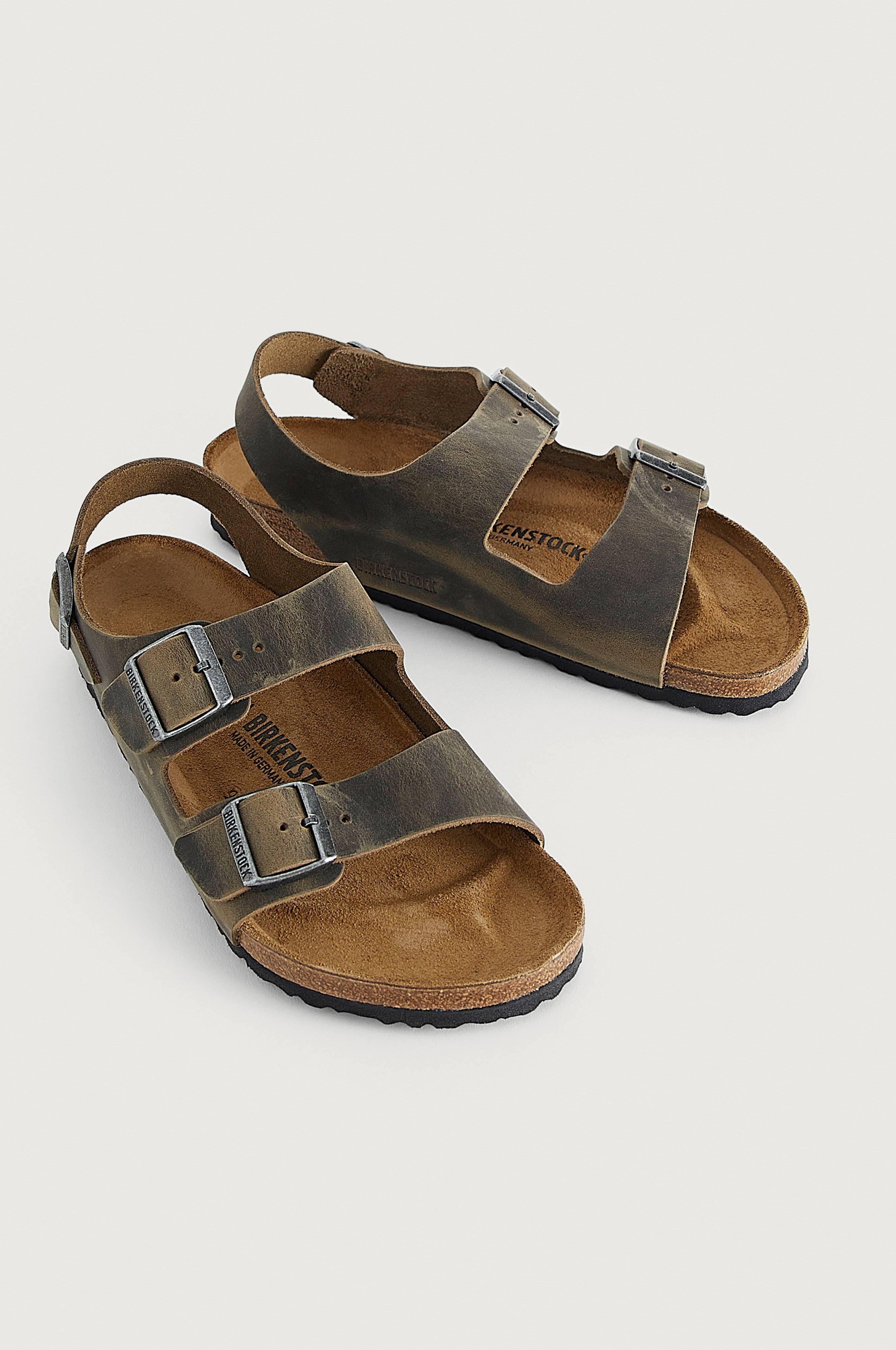 Sandaler fra Birkenstock med ergonomisk såle. Sandalene har remmer i skinn og spenne som gjør at du kan justere lengden i flere ulike posisjoner. Sålen er i kort og gummi.