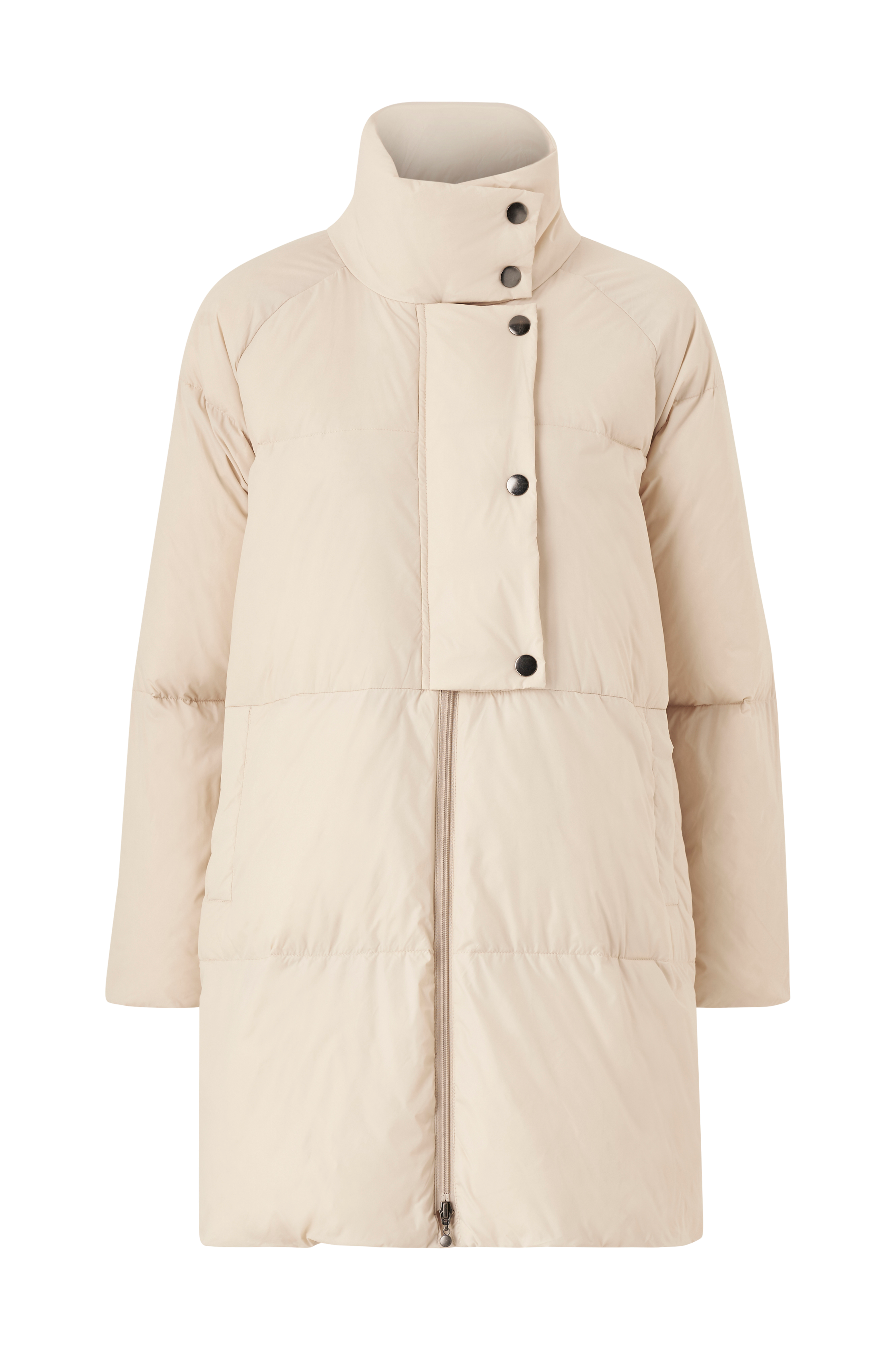 • Lett jakke med dunvattering• To-veis glidelås• Kort klafflomme med trykknapper oppover foran• Høy krage med trykknapper• To lommer• Splitt med trykknapper i sidene• Lengde: 86 cm i størrelse S