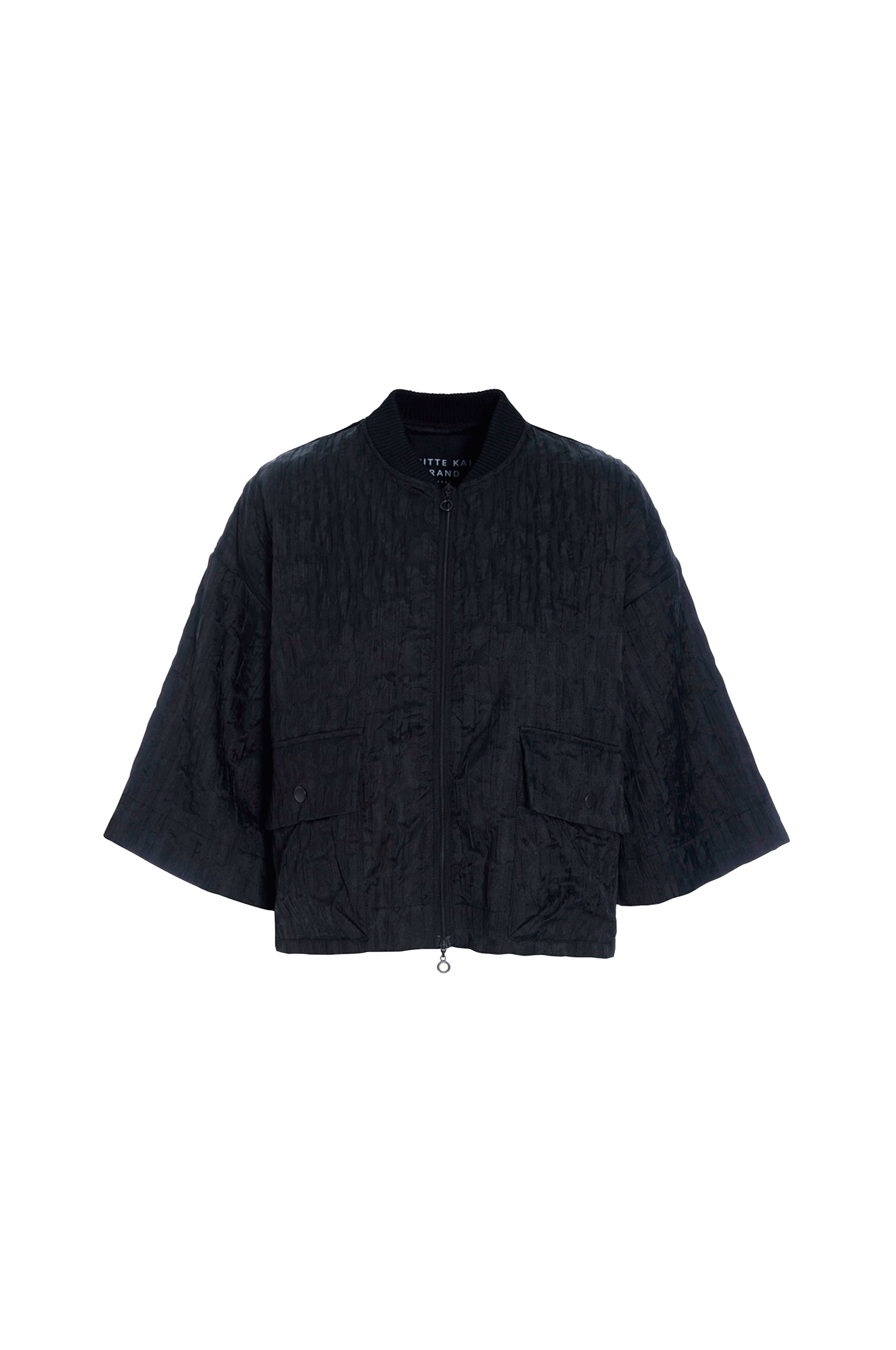 • Kort, bred modell• Ribbet mansjett i halsen• Glidelås foran• Brede kimonoermer 3/4 lang• Lommer med lommeklaff foran• Strukturmønstret materiale• Ufôret• Lengde: 53 cm i størrelse S