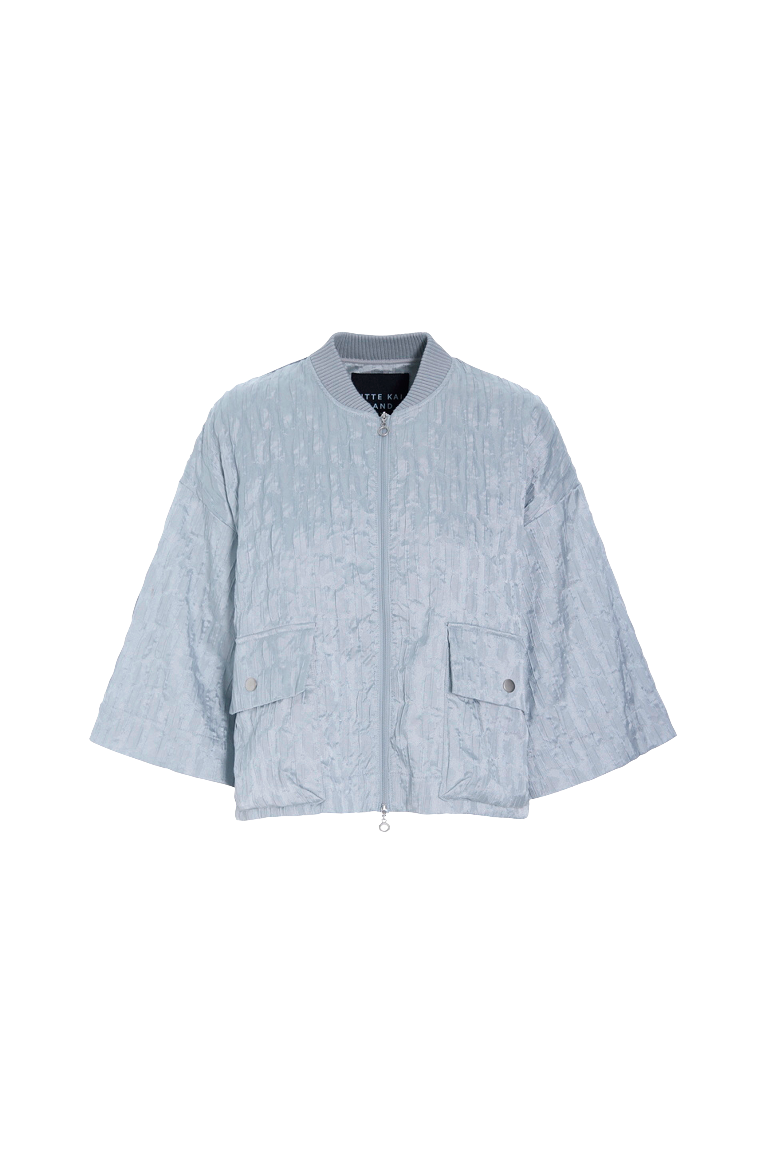 • Kort, bred modell• Ribbet mansjett i halsen• Glidelås foran• Brede kimonoermer 3/4 lang• Lommer med lommeklaff foran• Strukturmønstret materiale• Ufôret• Lengde: 53 cm i størrelse S