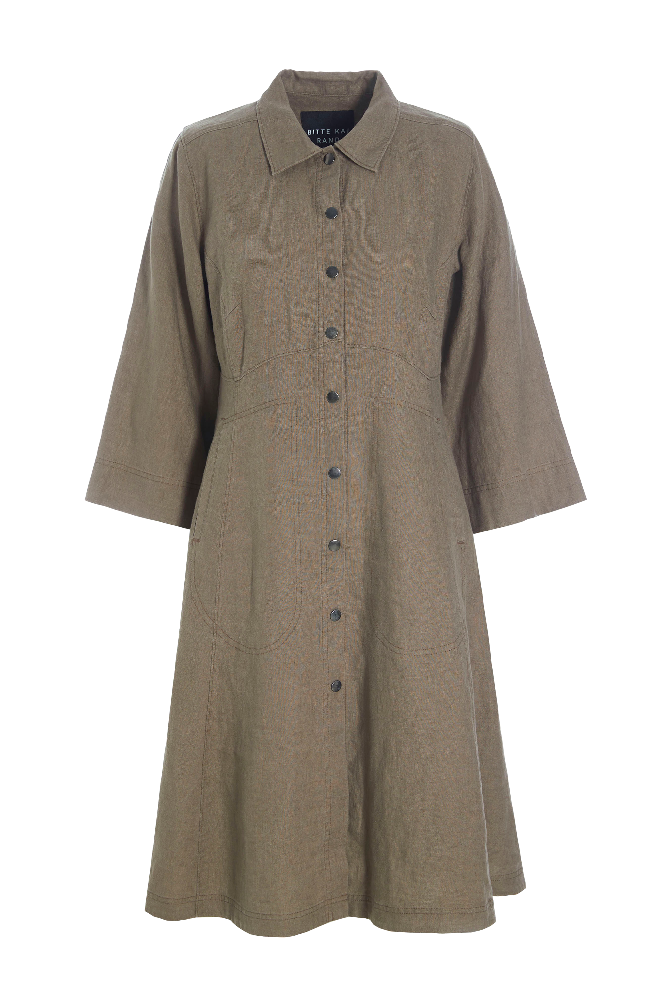 • Kjole• Trykknapper hele veien fram• Ermer 3/4 lang• Noe figursydd modell• Lengde: 105 cm i størrelse S