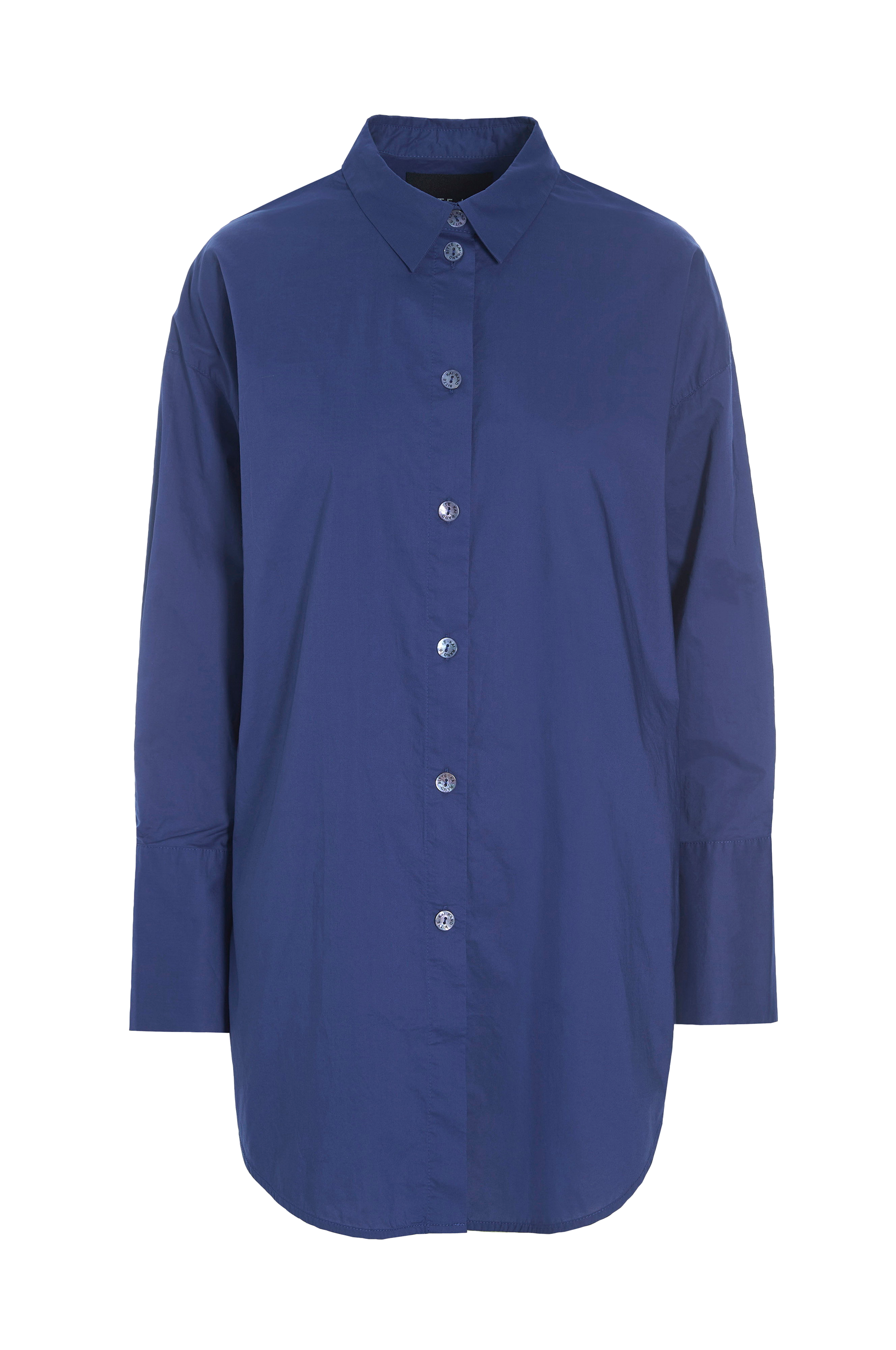 • Lang skjorte i bomull• Knapper med logotrykk• Lange ermer med brede mansjetter• Avrundet hem