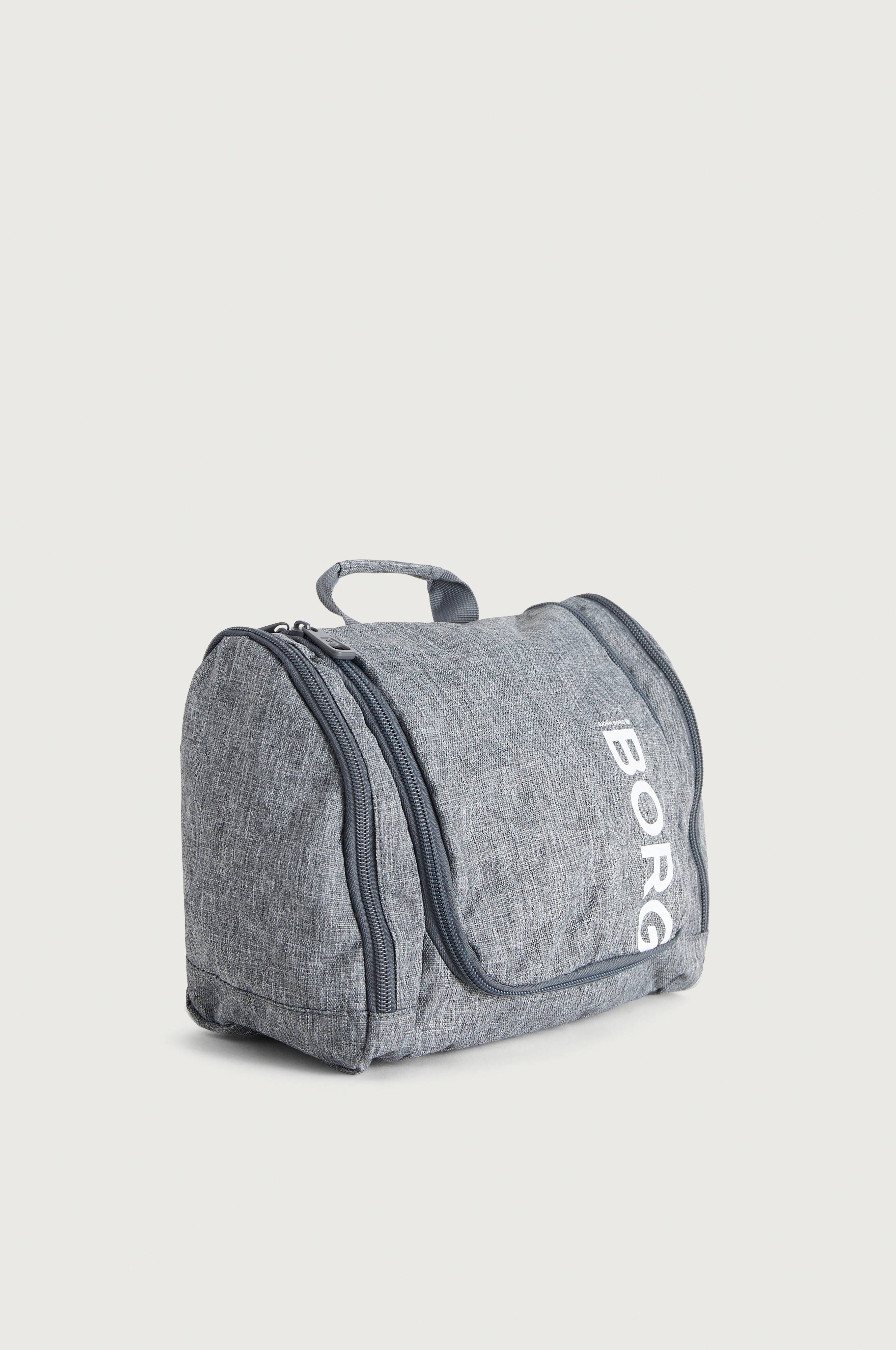 • Toalettmappe med logo• Åpningsbar hovedlomme• To innvendige glidelåsromer• Innvendig elastisk stropp• En innvendig henger• To utvendige glidelåsromer i sidene• Mål: B 26 cm, H 19 cm, D 12 cm.