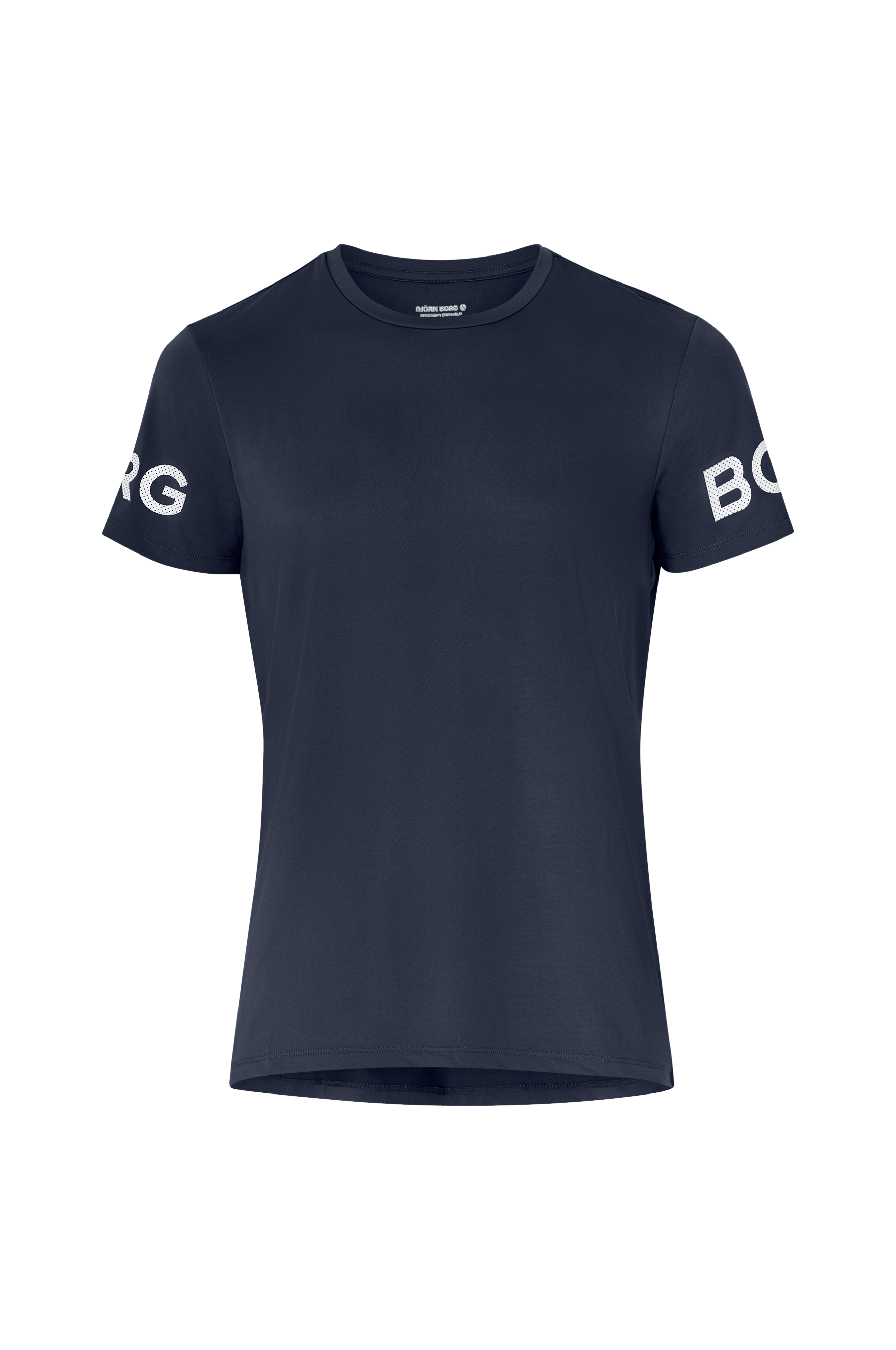 Trenings-T-shirt Tee Borg fra Björn Borg i Hydro Pro-materiale som transporterer bort svette og holder deg tørr under treningsøkten. Rund, finribbet hals og Borg-trykk på ermene. Lengde ca. 74 cm i str M.