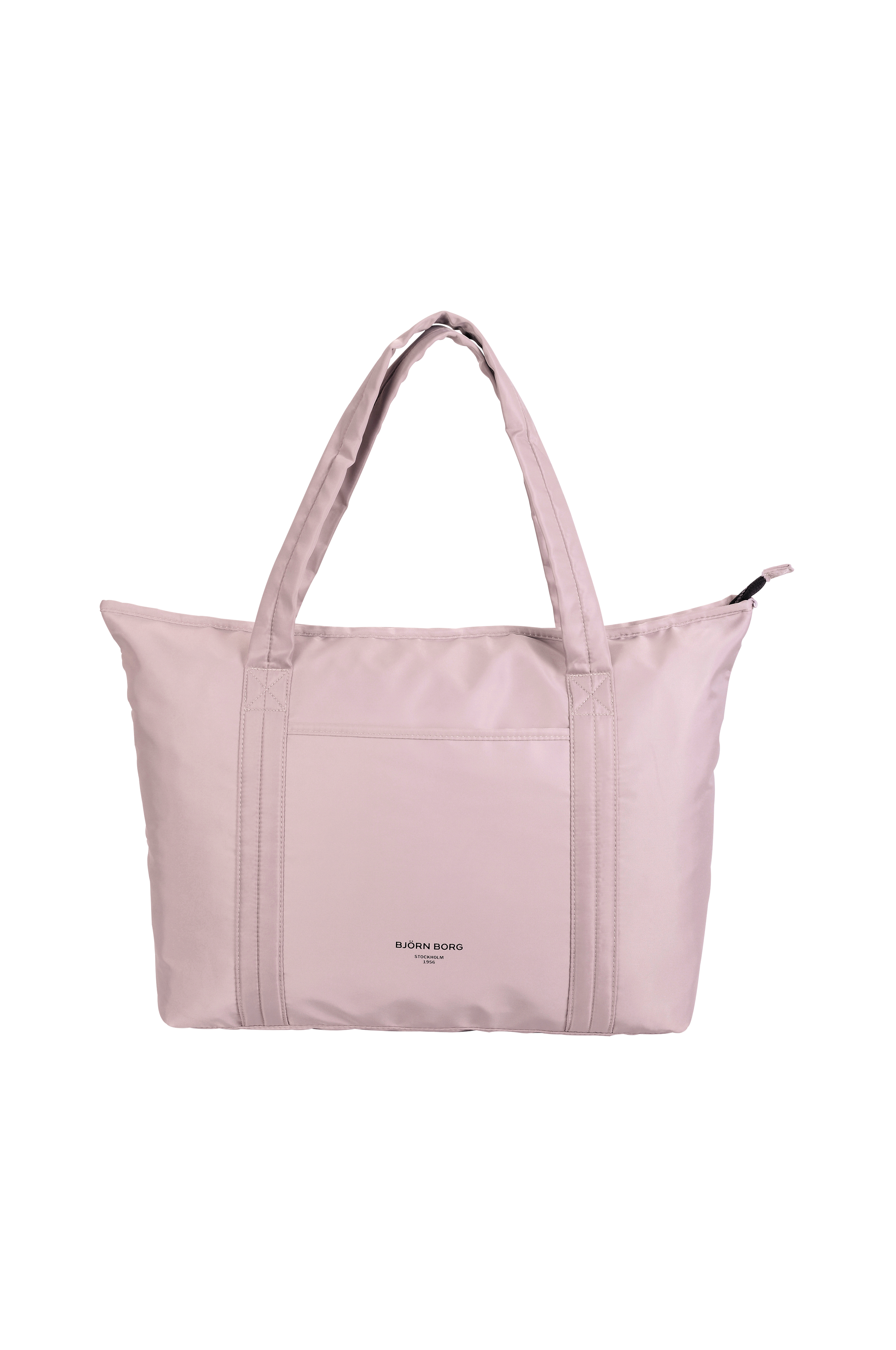 • Vesken i polyester med lett skinnende overflate• Utvendig, åpen lomme• Lukning med glidelås• Innvendig glidelåslomme• To bærehåndtak• Mål: B 36 x H 45 x D 13 cm