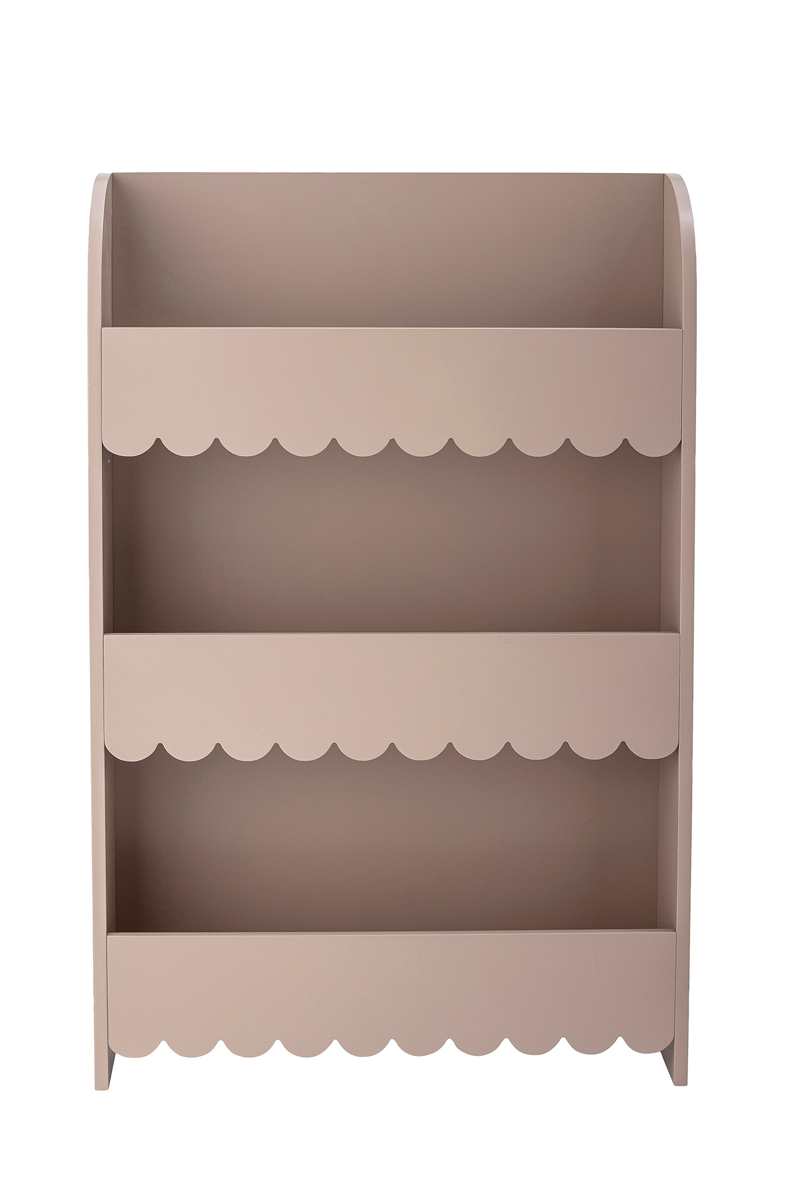 Bokhyllen salma fra bloomingville mini er en herlig kombinasjon av funksjon og estetikk. Med sin vakre støvbrune nyanse og de sjarmerende buene på hyllene gir bokhyllen et søtt og koselig preg på rommet. Bruk den til å oppbevare bøker, kosedyr og leker, og skap mer plass til lek på gulvet. L52xh80xb15 cm