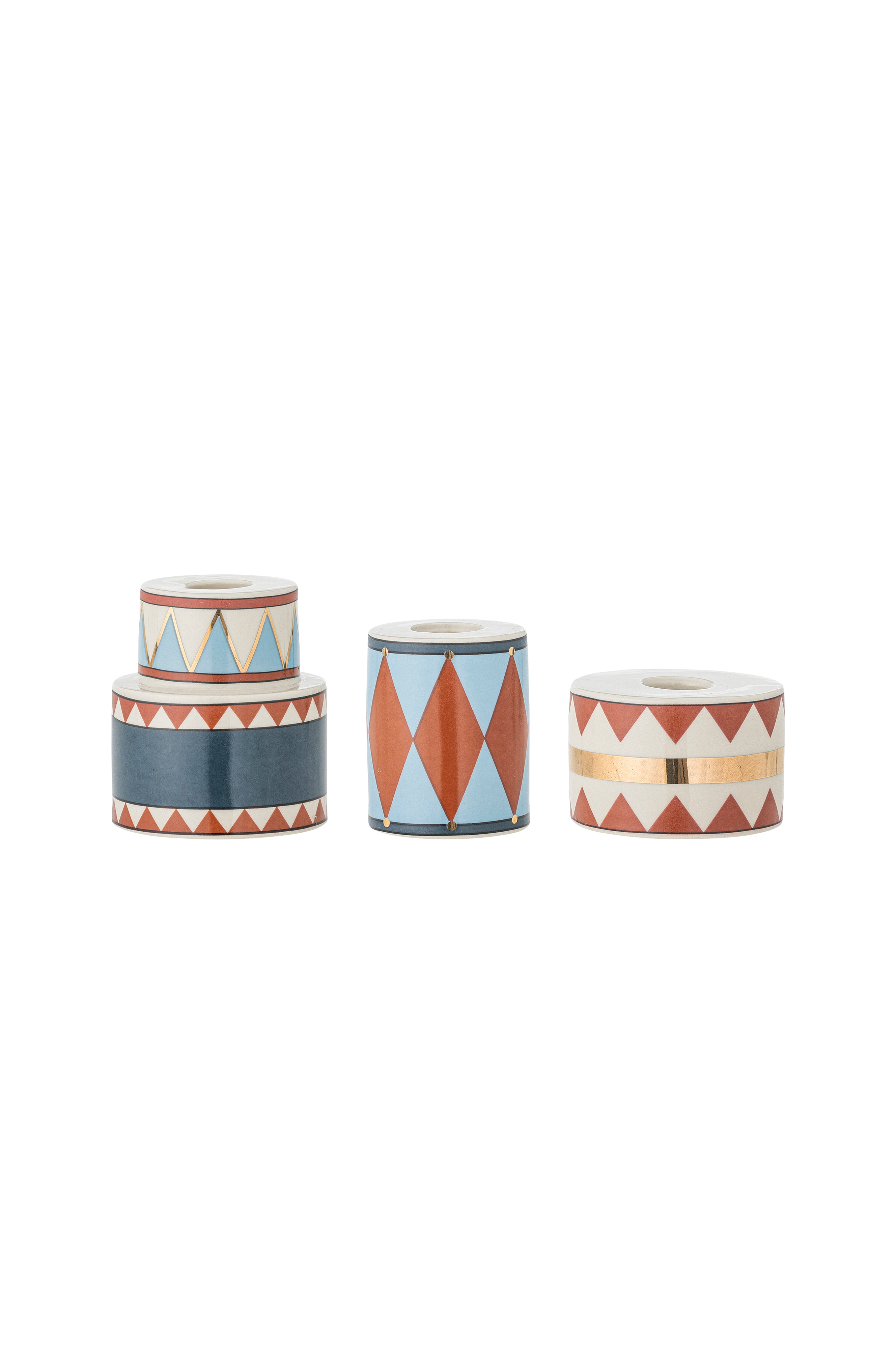Bitja Lysestaker fra Bloomingville, laget av steintøy, er et sjarmerende sett med tre, hver formet som en tromme og utsmykket med festlige mønstre. Disse lysestakene gir en koselig julestemning til ethvert hjem og er ideelle for å spre lys og glede i høytiden. Dimensjon: D7,5xH5/D5,5xH7/D7,5xH8,5 cm, sett med 3 stk.