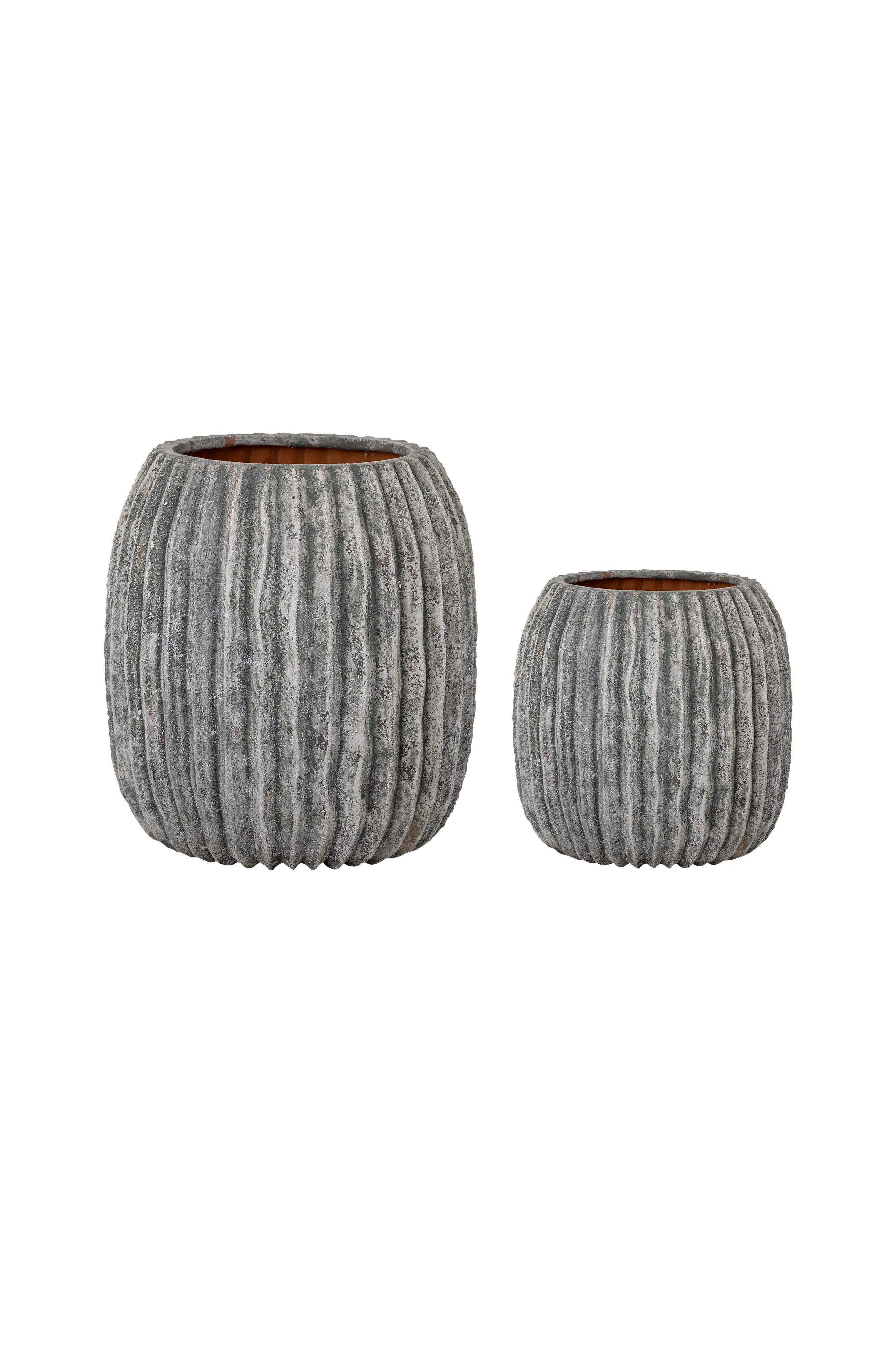 Den dekorative blomsterpotten Efim fra Bloomingville er et sett med to unike, lettvektige blomsterpotter av terrakotta. Den vakre, grå fargen står i kontrast til blomstene du setter i, og ser fantastisk ut både inne og ute. Mål: Stor potte Ø 47, høyde 51 cm. Liten potte Ø 27, høyde 31 cm.