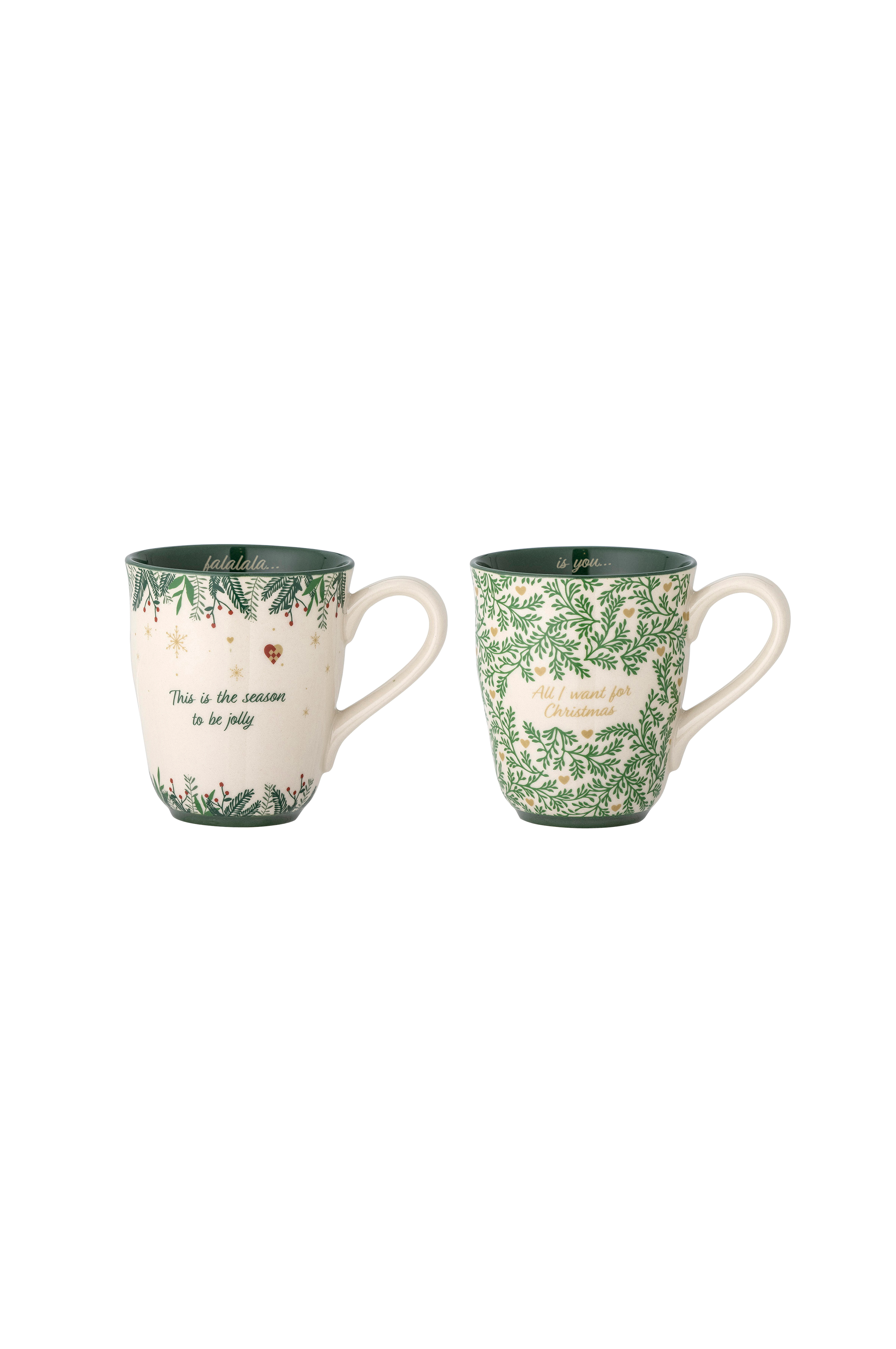 Grazia krus fra Bloomingville er et koselig tilskudd på kjøkkenet. Krusene er av steintøy i klassiske julefarger. Begge krusene er dekorert med ulike mønstre og et fint sitat fra en julesang. De kommer garantert til å spre glede på kjøkkenet.