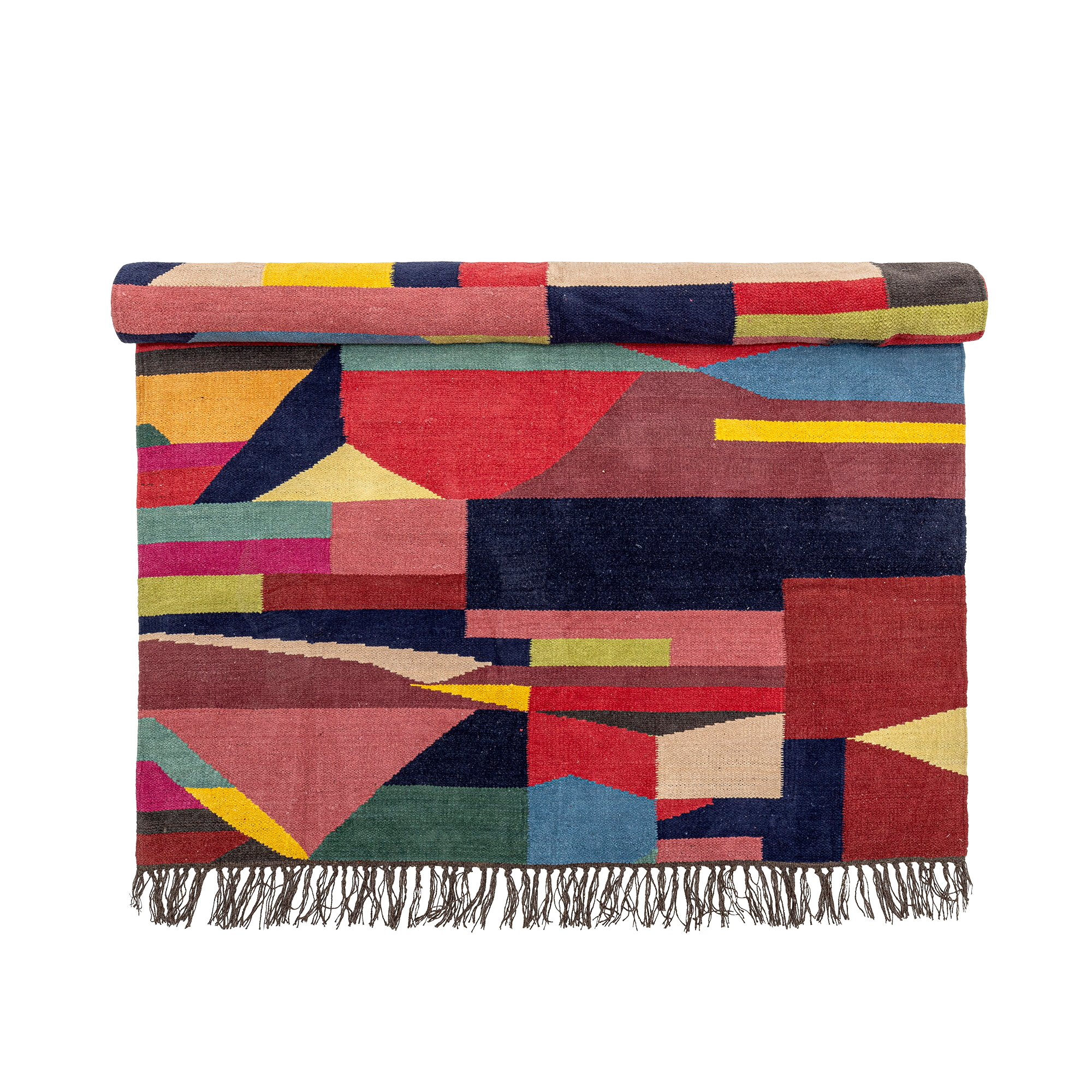 loggia fra bloomingville er et håndvevd teppe med fargerike mønstre som gir et stilig preg til ethvert interiør. Teppet har frynser i begge ender og en myk bomullsfølelse som skaper en koselig atmosfære uansett hvor det plasseres. Den håndlagde teknikken gjør hvert teppe unikt, noe som gir et personlig preg til ethvert rom. Dimensjon: l200xb140 cm