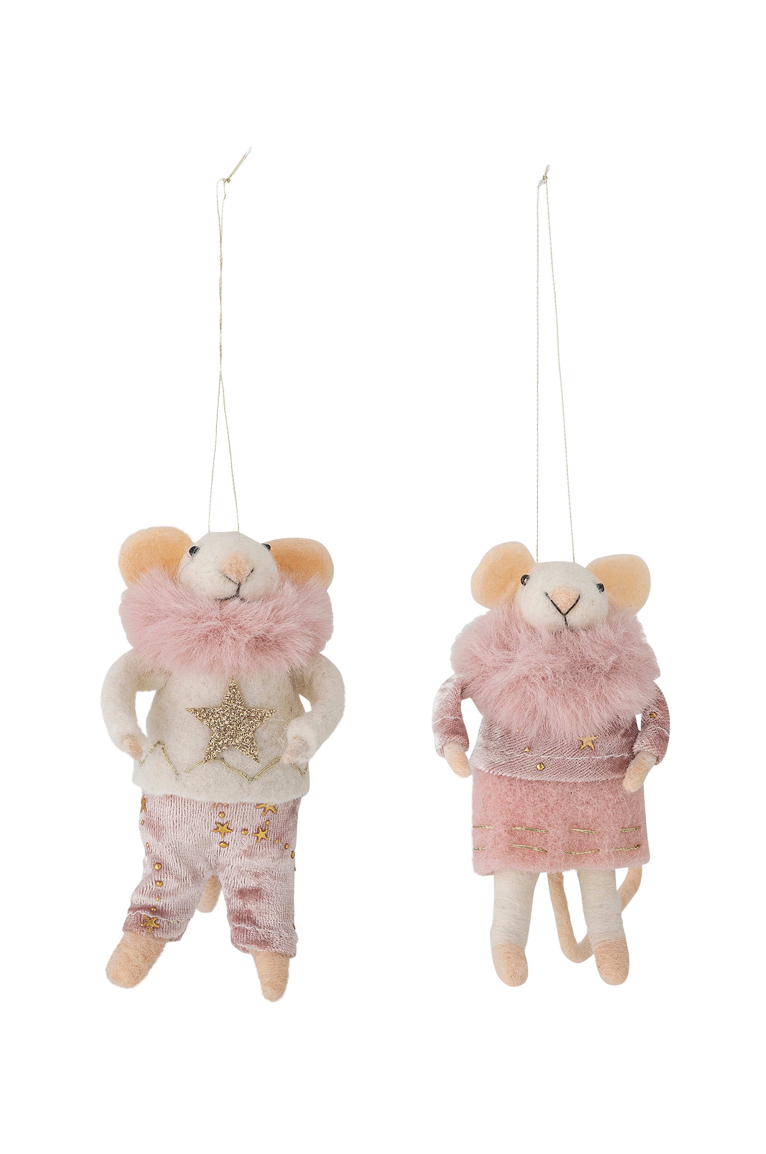 Peo Ornament fra Bloomingville består av to sjarmerende mus, tovet i ull og dekorert med festlige detaljer. Deres lekne antrekk bidrar til en koselig atmosfære i julepynten din. Utstyrt med en gyllen opphengssnor er de enkle å plassere på juletreet eller som en del av en større dekorasjon, hvor de tilfører en morsom dimensjon.